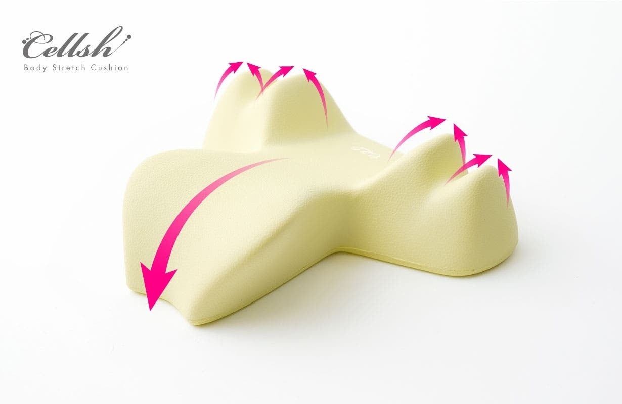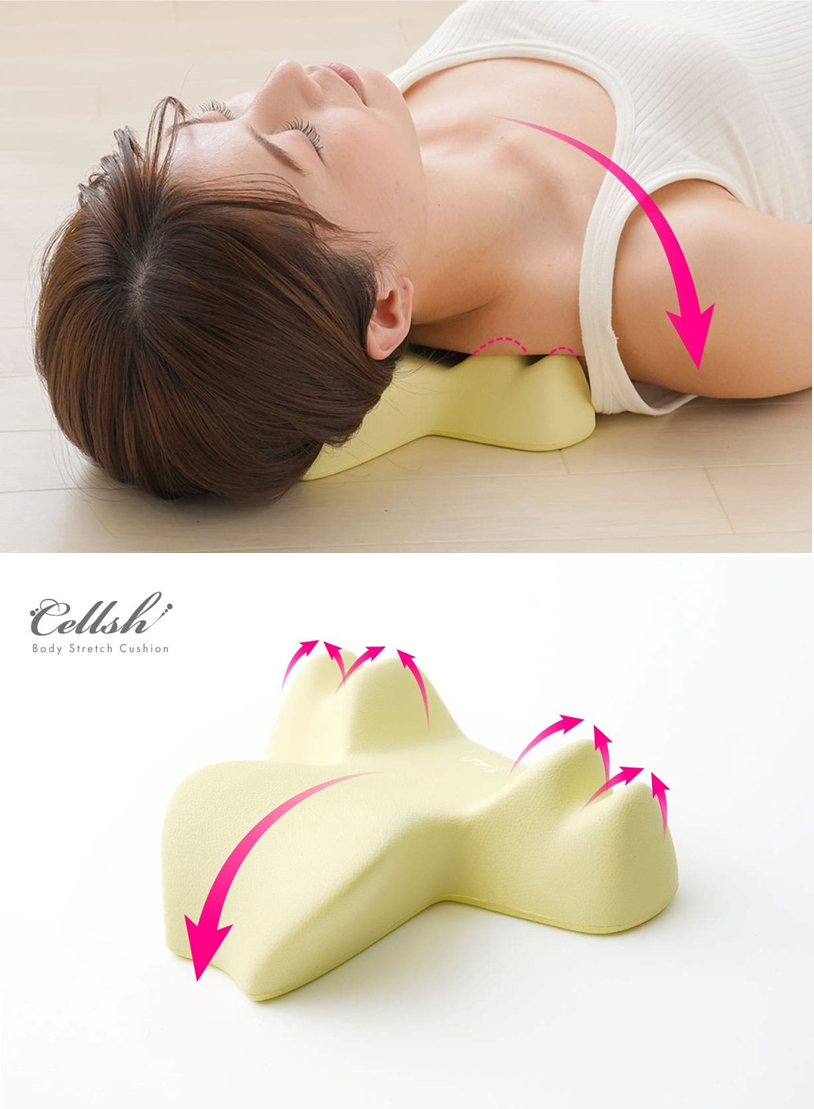 大人気Cellshシリーズの新クッション!筋肉ほぐれて気持ちいい♪寝転ぶだけの簡単ストレッチ!程よい弾力性とフィット感が癖になる!肩まわりの筋肉をグイ~と刺激するたまらない感覚♪