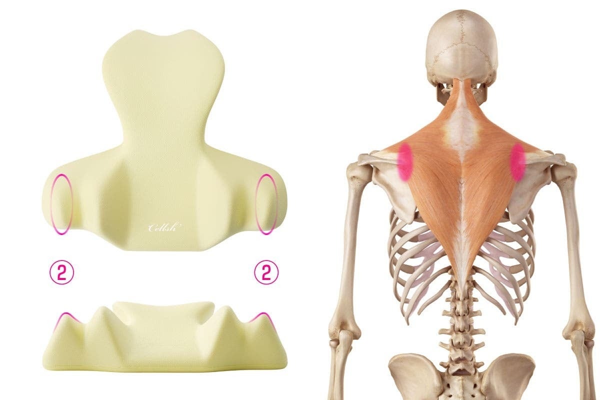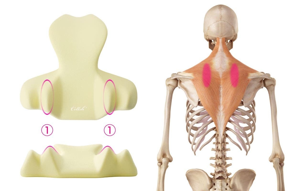 「Cellsh肩ストレッチクッション」は、横一列に並んだ4つの突起がそれらの筋肉をグイっとピンポイントに刺激してくれます!