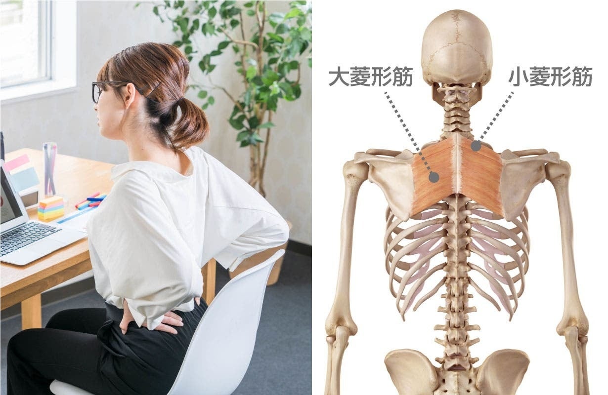 大菱形筋・小菱形筋が固まると肩甲骨の内側あたりのハリの原因になります。