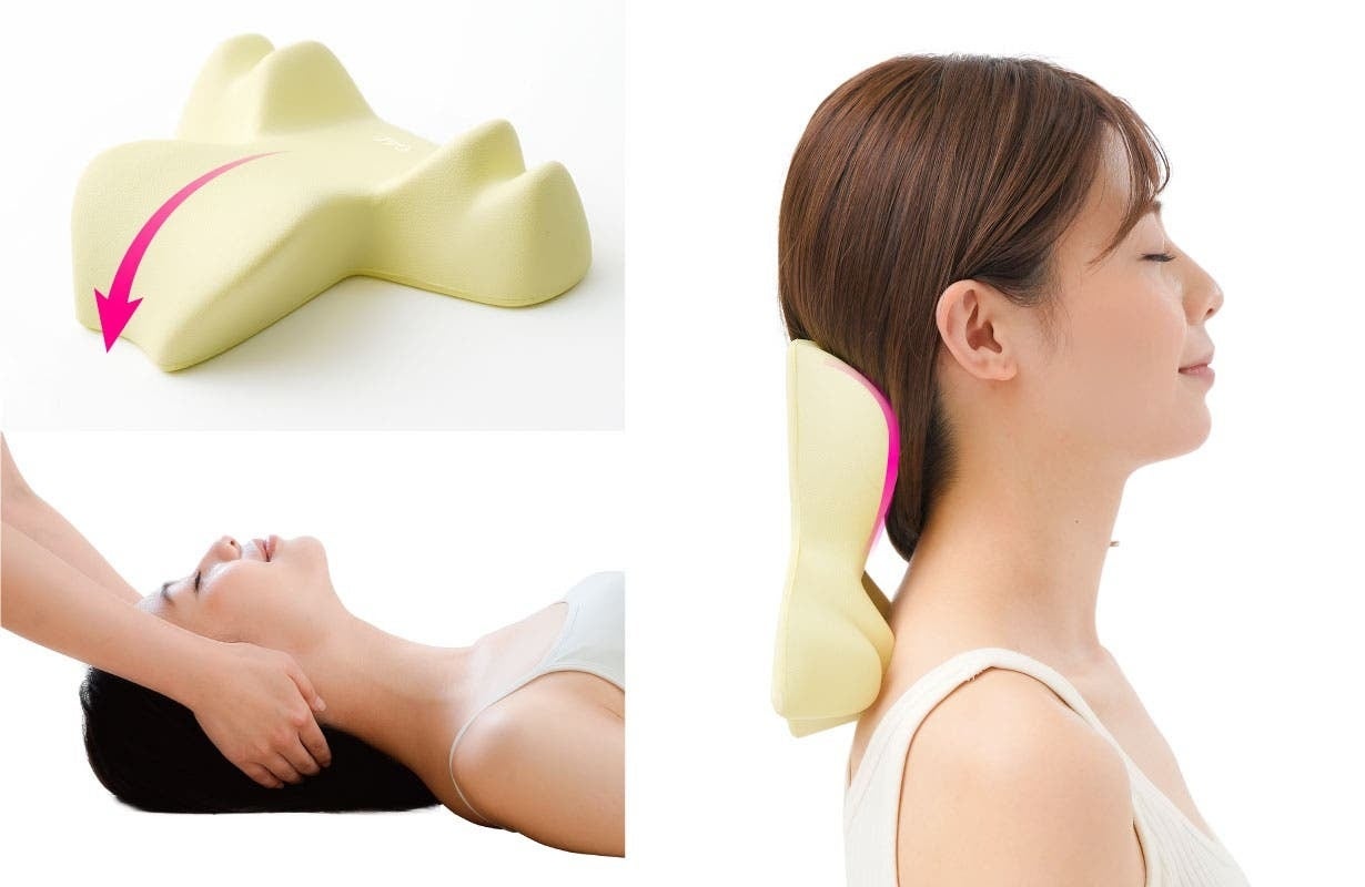 「Cellsh肩ストレッチクッション」を気持ちよくをご使用頂くため、ストレッチをしている間は、頭を支えてくれる機能性も兼ね備えています。それはまるで、誰かの手で受け止められているかのような形状となっています。
