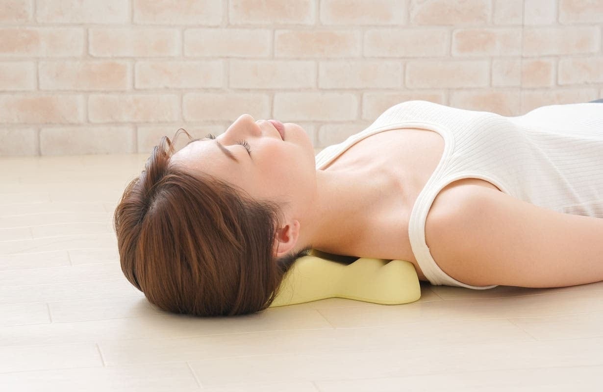 寝転ぶだけでも肩の筋肉をほぐしてくれますが、腕を頭の方へ上げたり、回すことでさらに指圧の効果は高まります。
