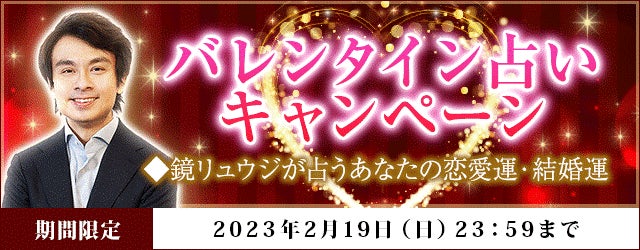 日本において占星術の第一人者として知られる鏡リュウジの月額公式サイトにて、現在『バレンタイン占いキャンペーン』を開催中です。サイト内で人気の恋愛占い・結婚占いを6種類のセットにし、充実のラインナップをご用意いたしました。気になるあの人の気持ちや2人の相性、人には言えない秘密の恋の悩みも占えます。この機会にぜひお楽しみください!