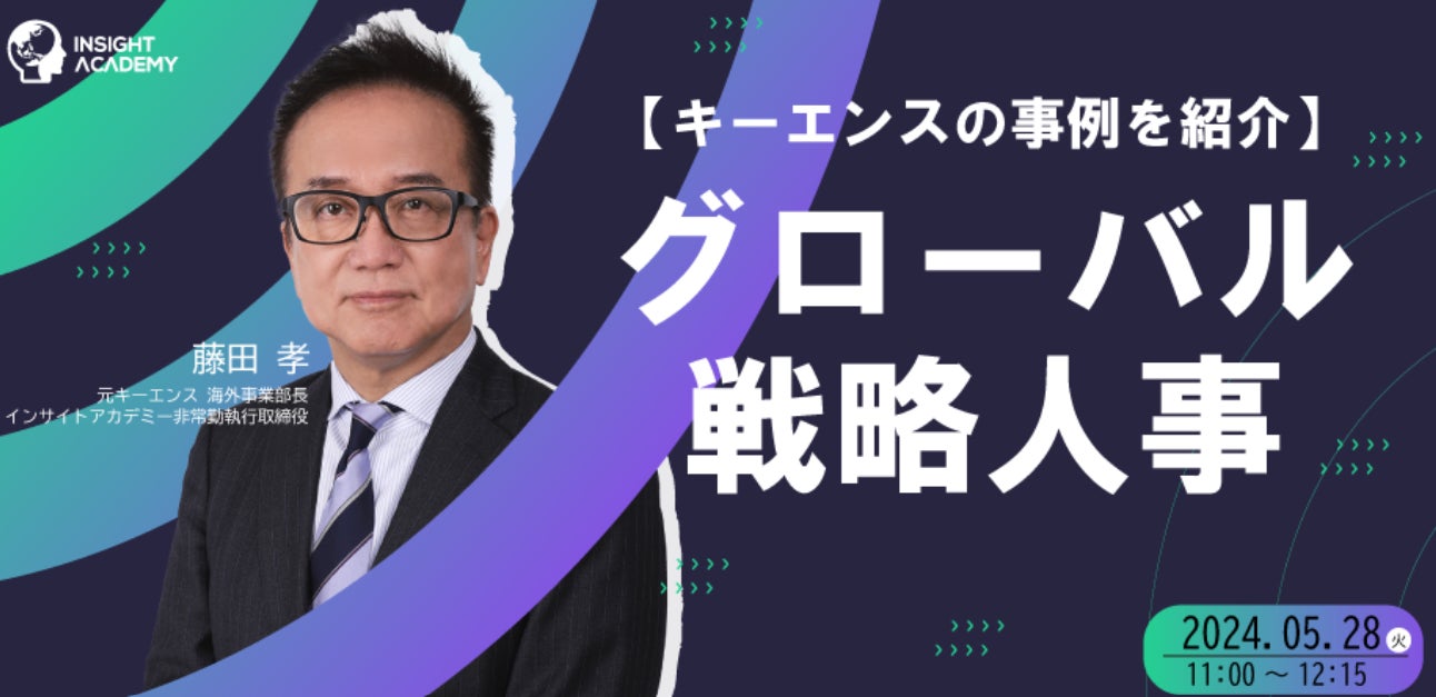 グローバル⼈材育成・研修業を⼿掛けるインサイトアカデミー株式会社(本社:東京都港区新橋、代表:金 珍燮)は、無料webセミナー「キーエンスの事例を紹介 グローバル戦略人事」を2024年5月28日(火)11:00より開催します。