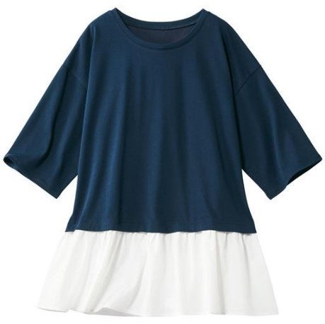 1枚で重ね着風スタイルが楽しめるプルオーバー。着るだけで、コーディネートが完成する便利な1着です。ふわりと広がるペプラムデザインが気になる腰回りをさりげなくカバーしてくれます。