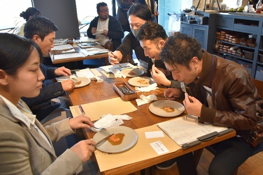 セミナーに参加した料理人たちは、手島シェフの説明を熱心にメモを取ったり、質問をしたりしながら、調理技術や工程を学びました。完成した料理を試食した後は、意見交換の場も設けられました。