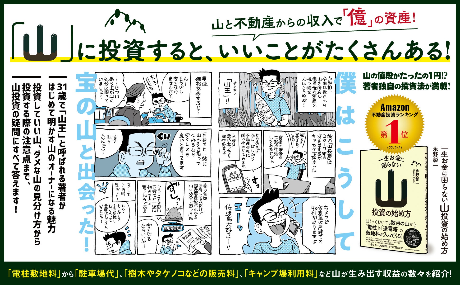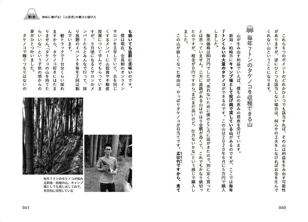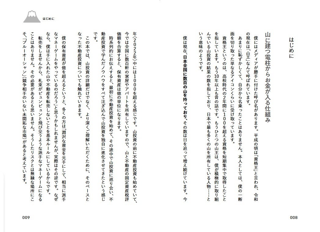 この本でお伝えするのは、お金がなくても、経験がなくても、可能な限りリスクを避けて、地味だけど確実に儲けるための「一生お金に困らない山投資の始め方」です。