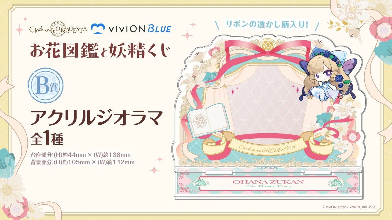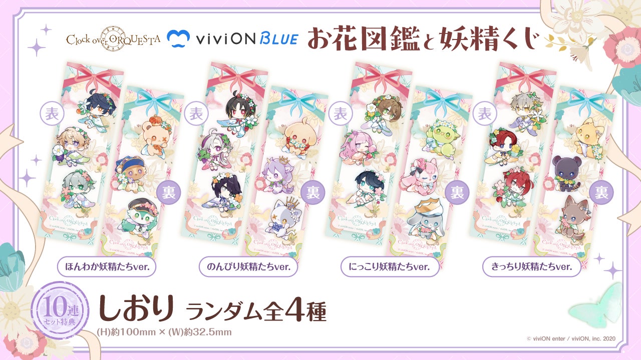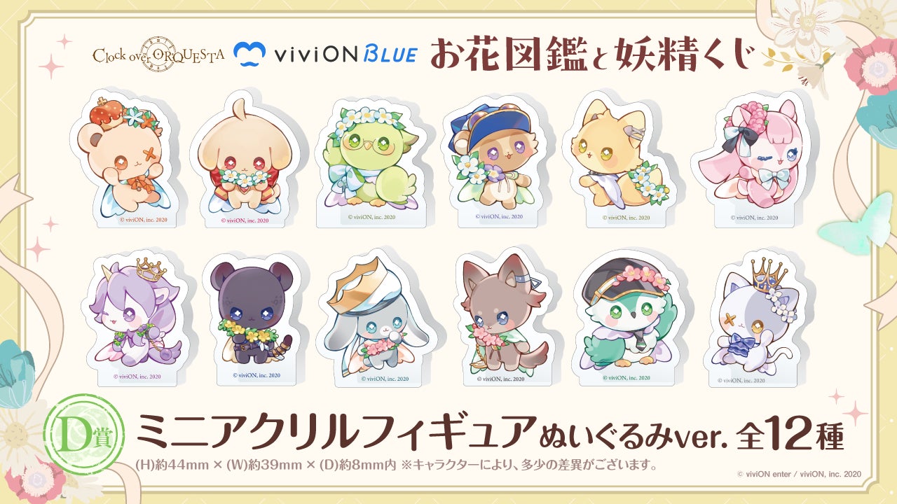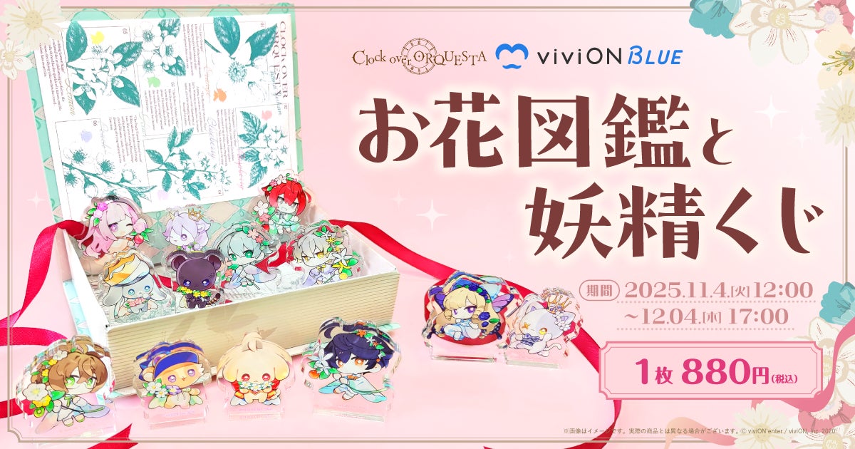 株式会社viviON(本社:東京都千代田区、代表取締役:明石 耕作)は、SNS連動型キャラクターソングプロジェクト『Clock over ORQUESTA』(通称:クロケスタ)について、オンラインくじの開催をお知らせします。今回のくじでは、「お花図鑑と妖精」をテーマにしたグッズを賞品としてご用意しています。11月4日(火)正午12:00より、viviONが運営する二次元グッズのバラエティーストア「viviON BLUE」において販売いたします。