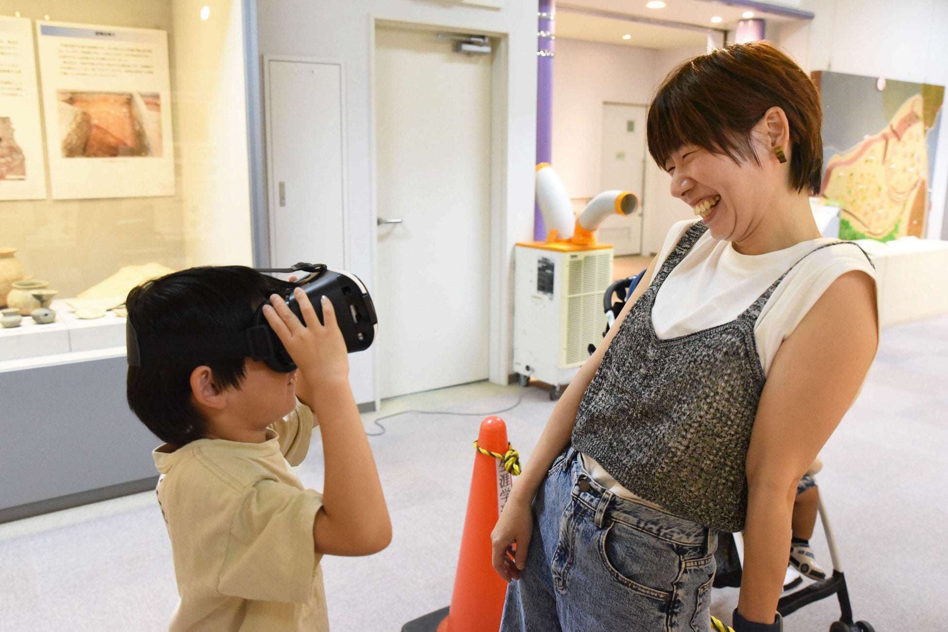 会場を訪れ、VRを体験した河本理衣(かわもとりえ、37歳)さん、哲(てつ、9歳)さん親子は、「意外とリアルに見えてびっくりしたし、壁の石もすごくきれいでした。まっすぐ同じものがただ重なっているわけではなく、大きさの違う石がパズルのように組み立てられていて、考えて作られているんだなと思いました」と話しました。