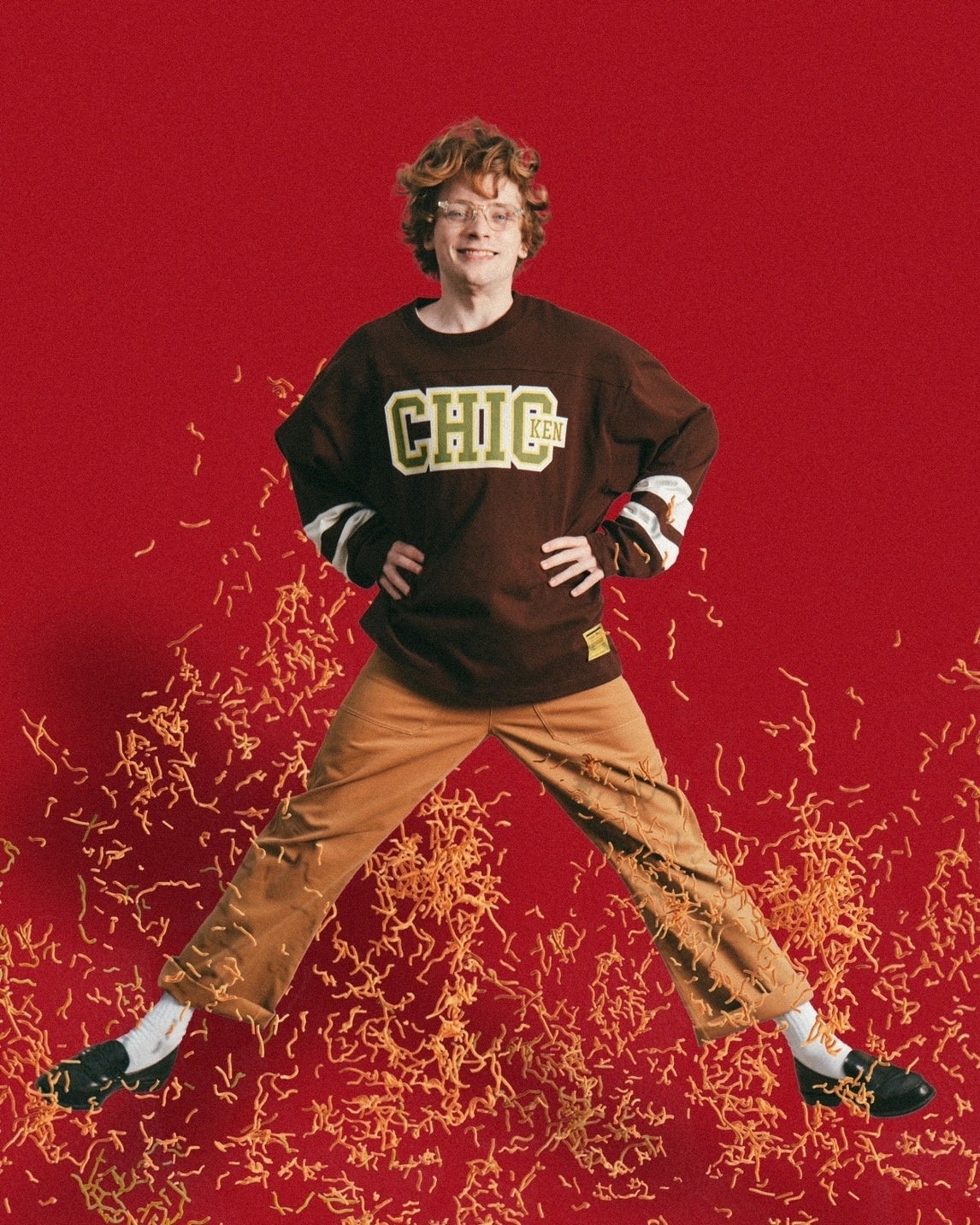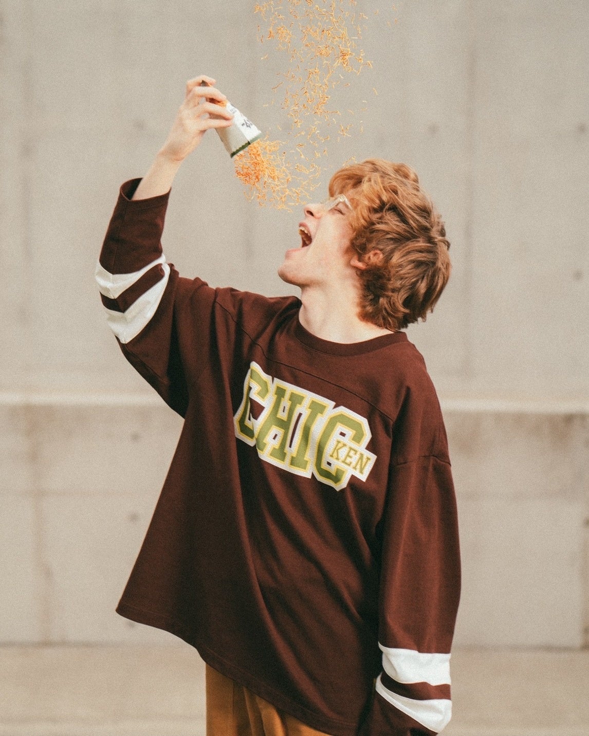 パッケージで使われている「CHICKEN」ロゴは一見「CHIC(シック)」=カッコいい洒落ている。にも見えますが、よく見ると「CHICKEN」=チキン味、という遊び心あるカレッジ風のロゴデザインに。