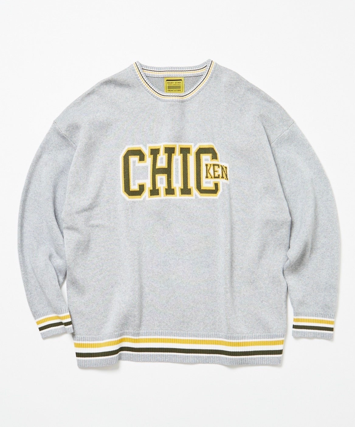 右上:LS FOOT BALL TEE CHICKEN ¥7,700(tax in) 左下:JACQUARD KNIT CHICKEN ¥7700(tax in)各アイテム2色展開