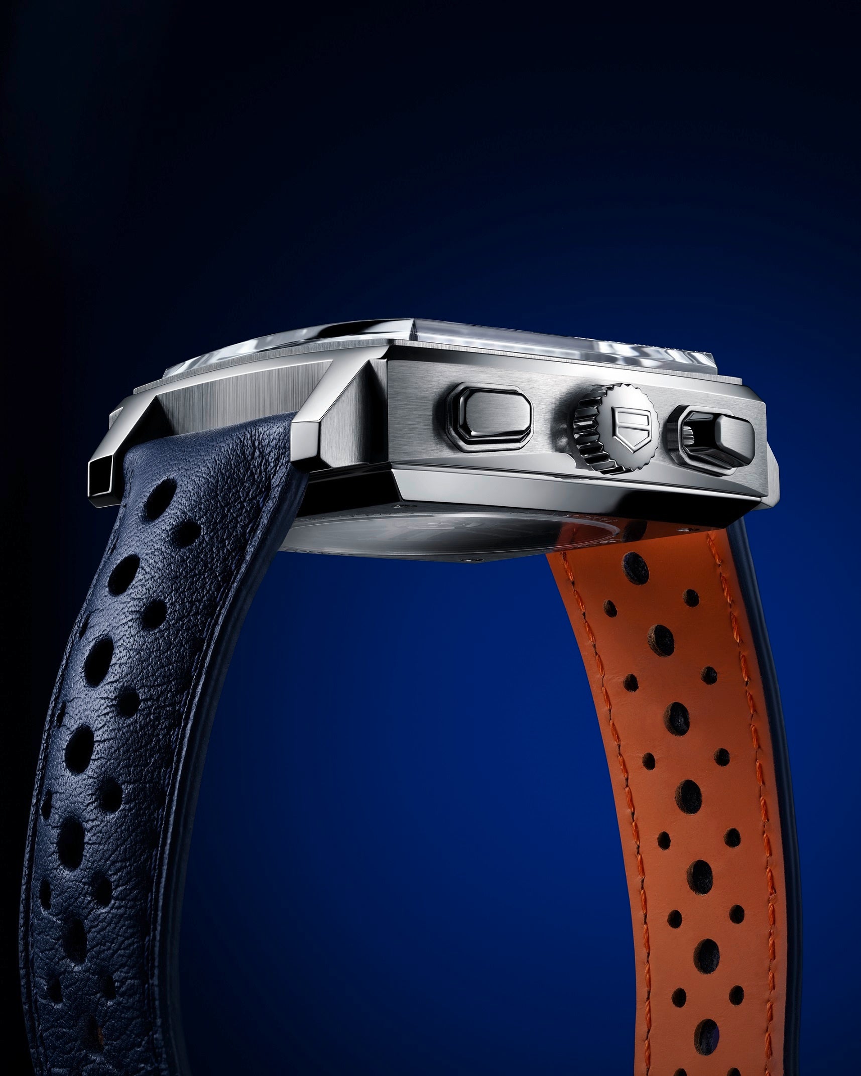 もちろん、ガルフの象徴である3色をベースにしたデザインは変わることはありませんが、今回は特別なダークブルー、ターコイズ、オレンジと、より現代的な色の組合せを提案しています。これらの新しい要素にちょっとしたひねりを加えた新タグ・ホイヤー モナコ ガルフモデルは、さらに個性を強め、より洗練されたガルフのテイストを呈しています。