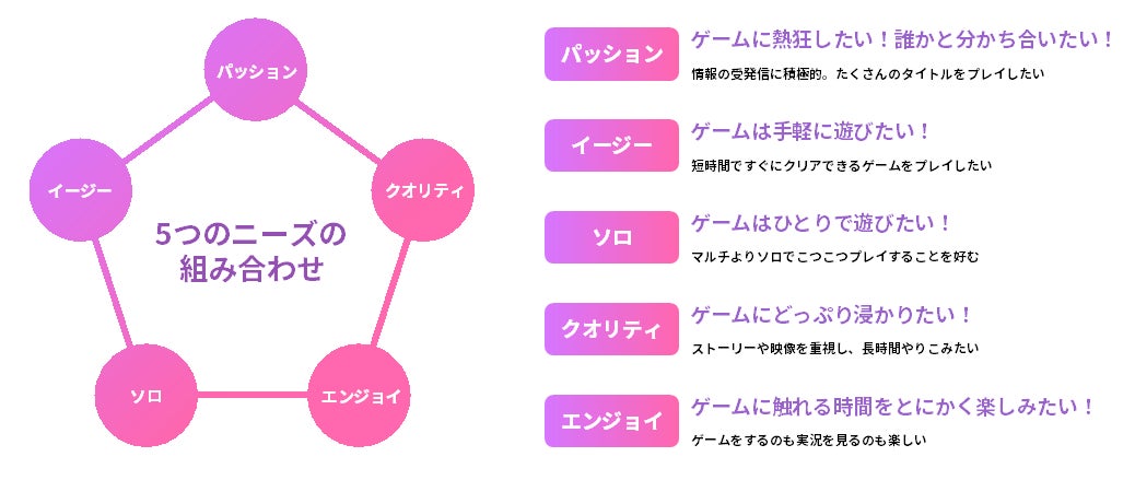<ゲームプレイヤー間の主要ニーズ/インサイト>