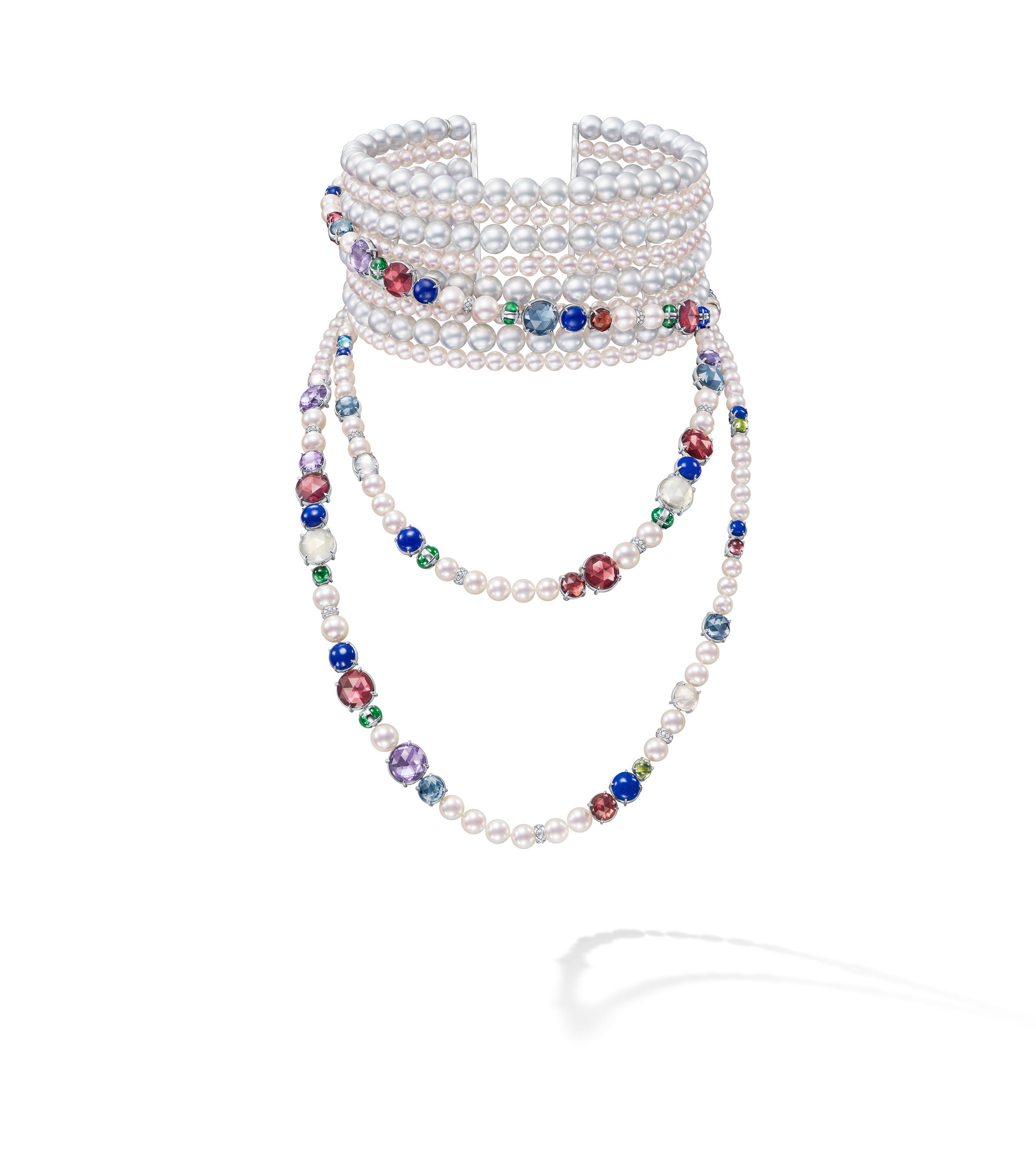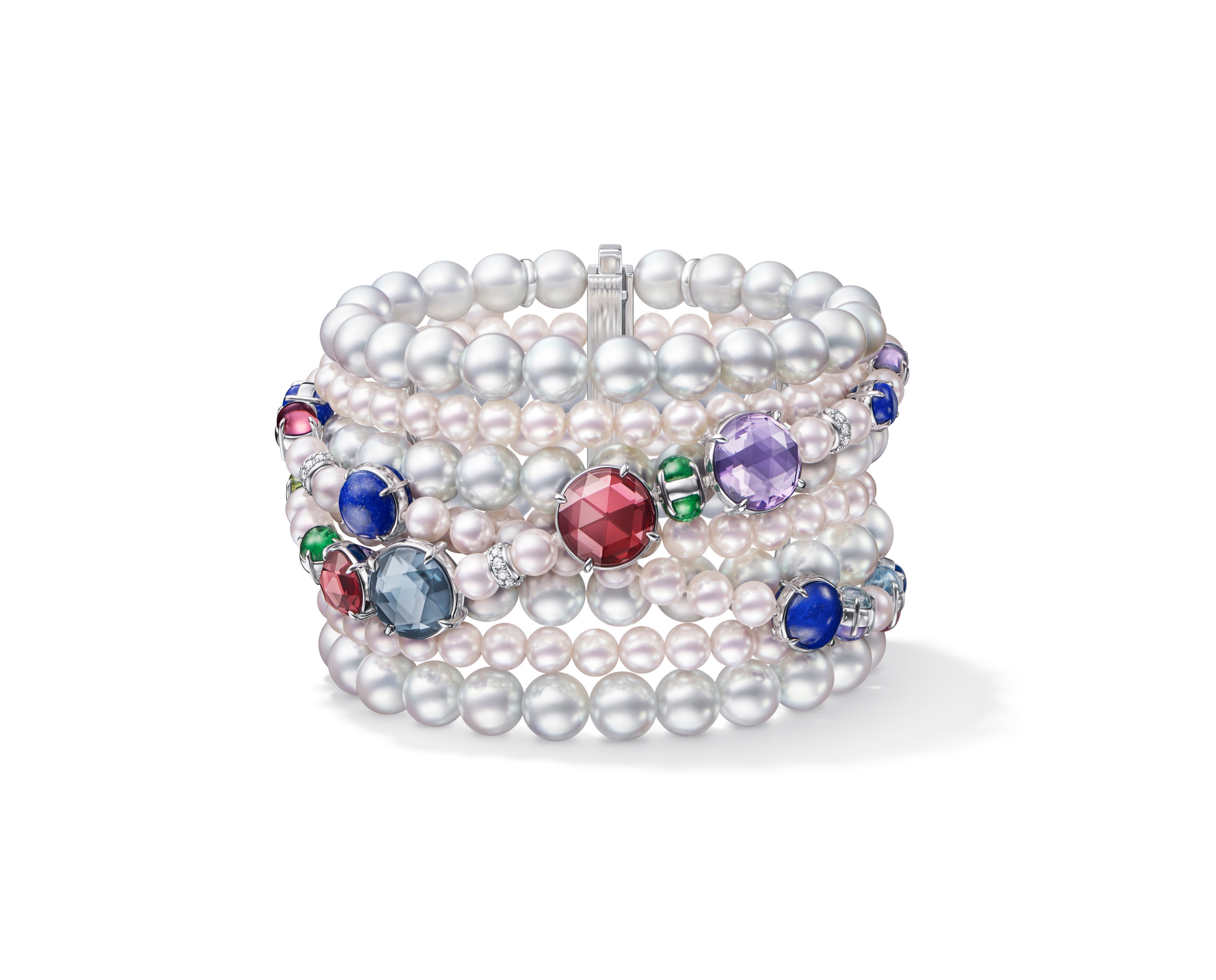 1920年代のパリの華やかな社交界を牽引し、時代を切り拓いてきた“エクストラオーディナリー”な女性。その女性像をモダンな解釈で表現したシリーズです。TASAKIの真髄であるパールが幾重にも重なった連と、色とりどりの躍動感溢れるカラーストーンのコントラストが美しいデザインは存在感が際立ちます。