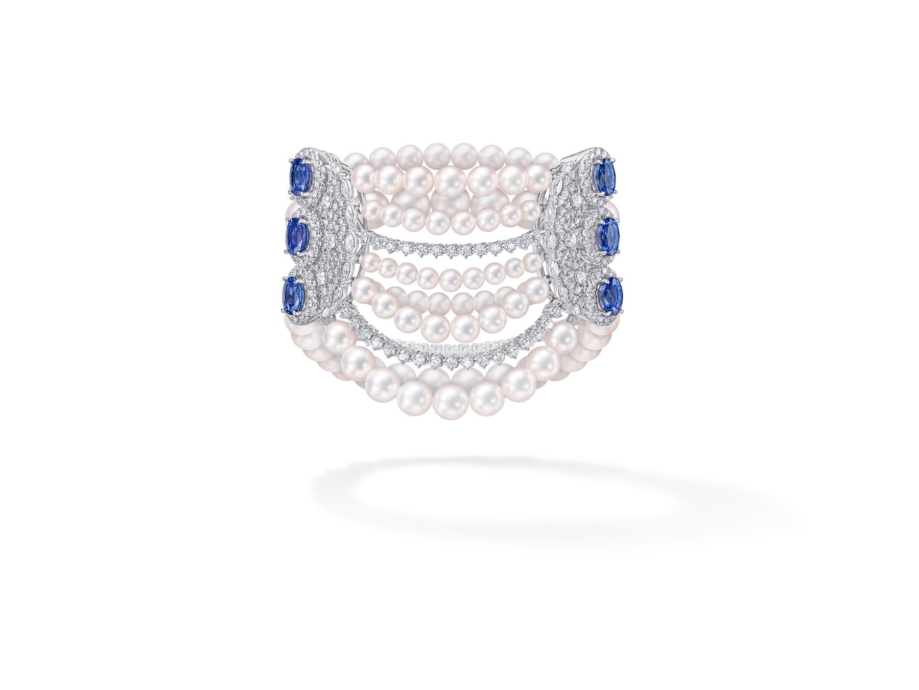 [18K ホワイトゴールド、プラチナ、あこや真珠、ダイヤモンド、ブルートパーズ、ラピスラズリ、アメシスト、