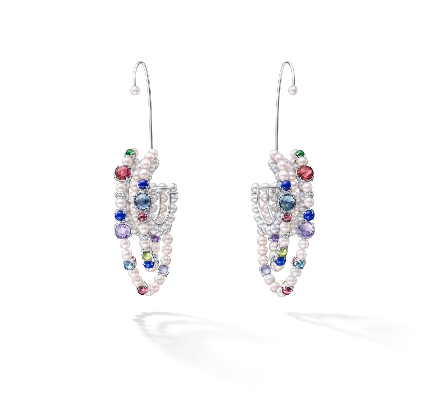 [18K ホワイトゴールド、あこや真珠、ダイヤモンド、マルチカラーダイヤモンド]