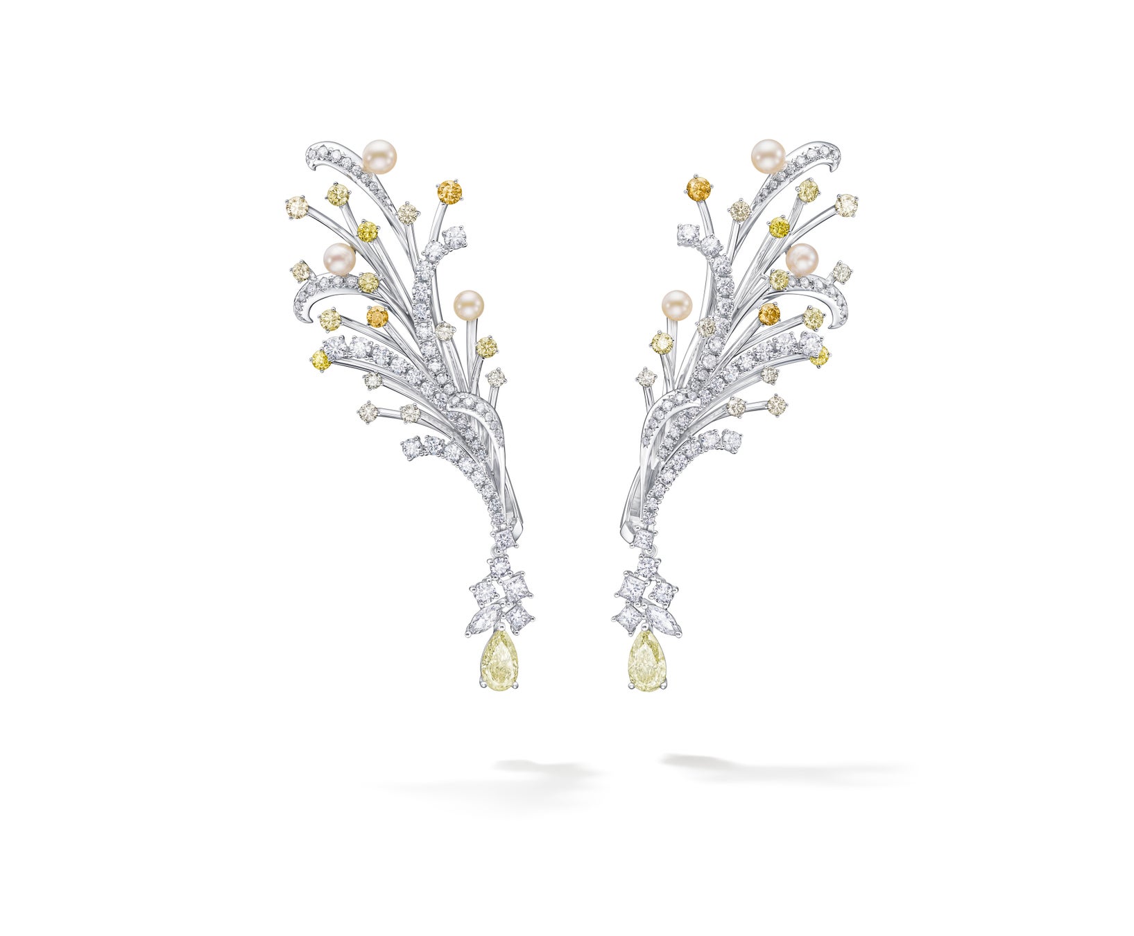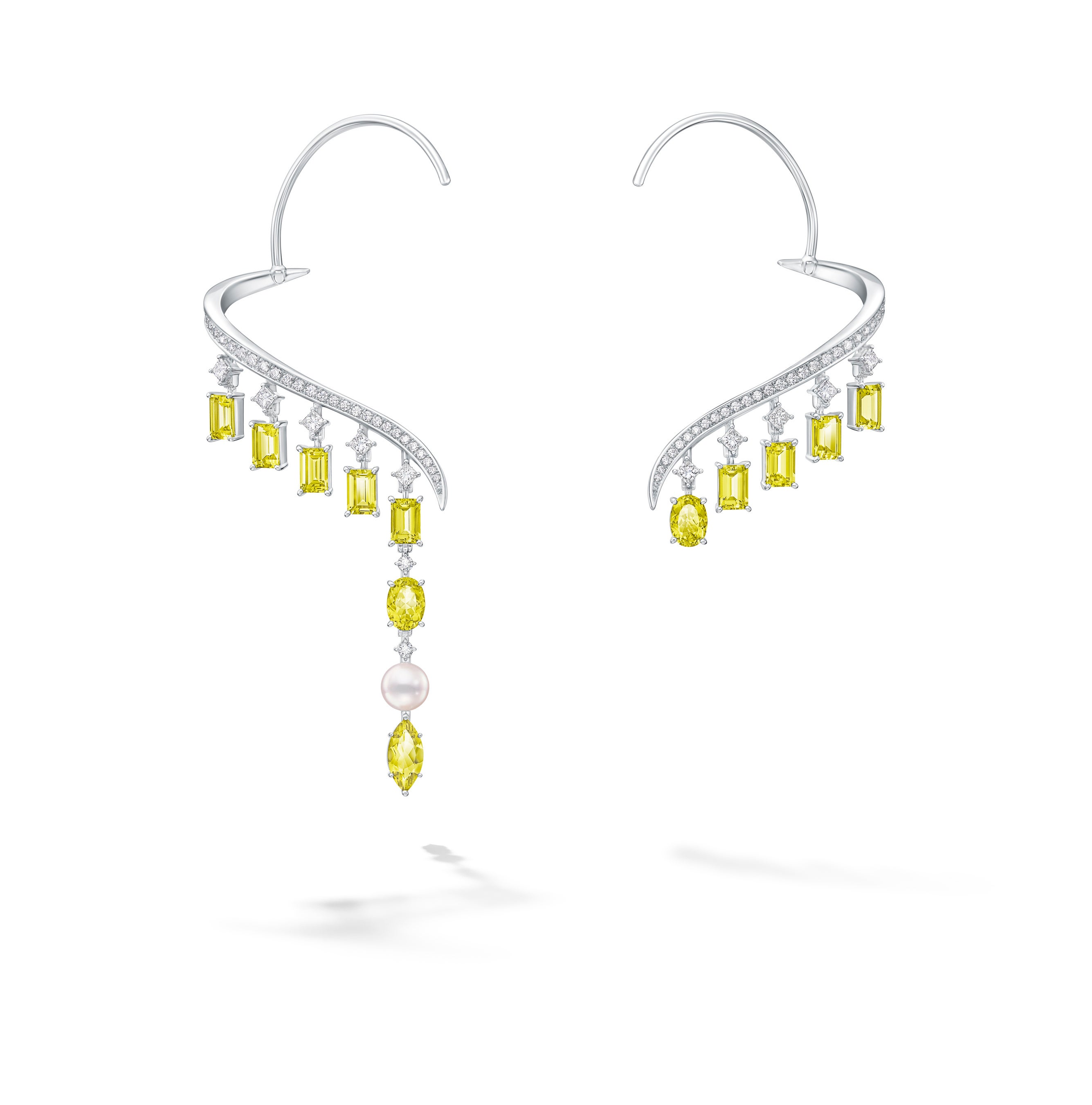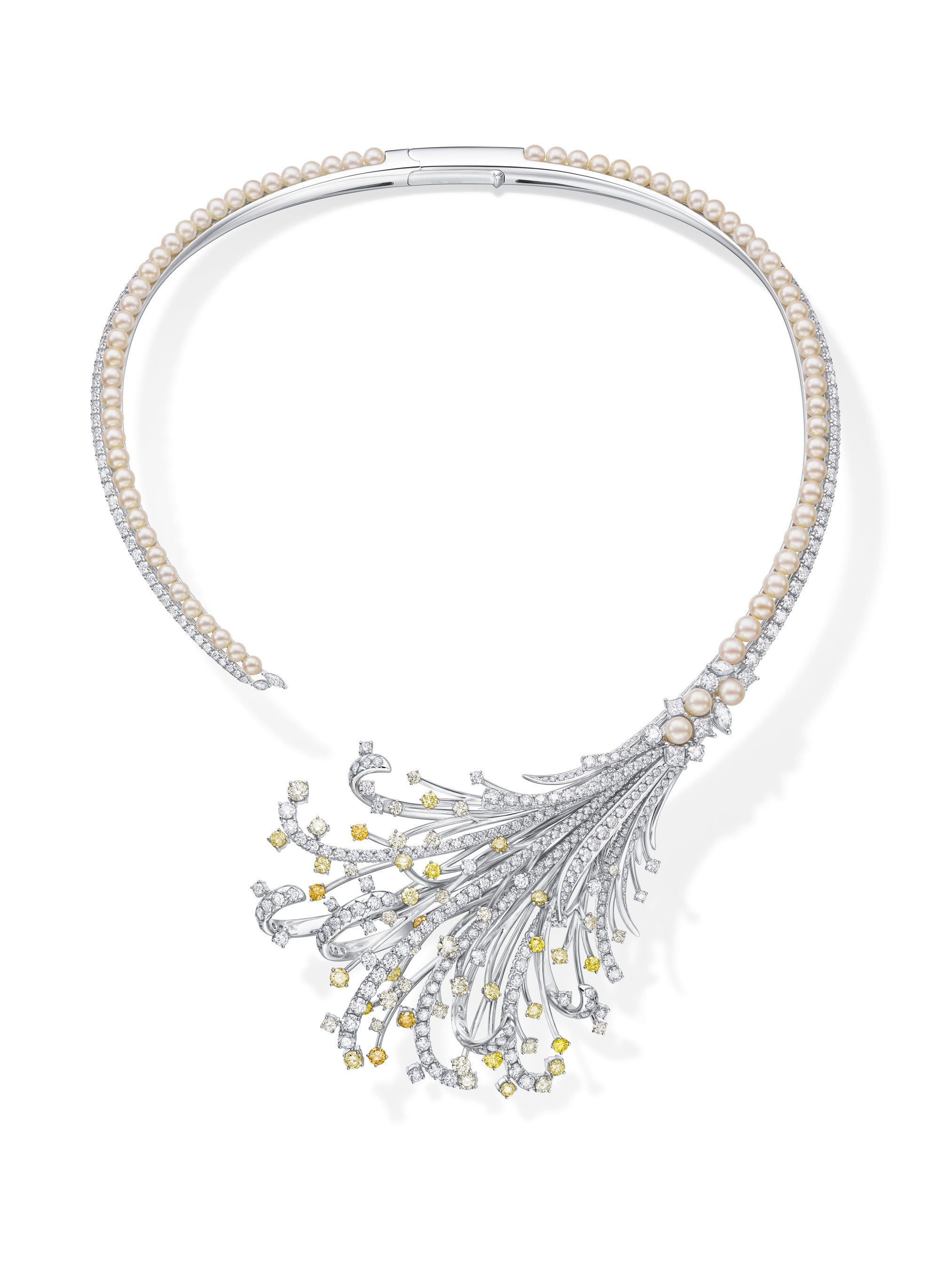 [18K ホワイトゴールド、あこや真珠、イエローダイヤモンド、ダイヤモンド、マルチカラーダイヤモンド]