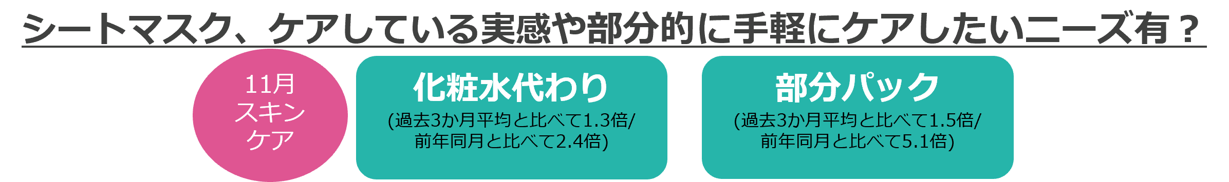 ・シートマスク、ケアしている実感や部分的に手軽にケアしたいニーズ有?