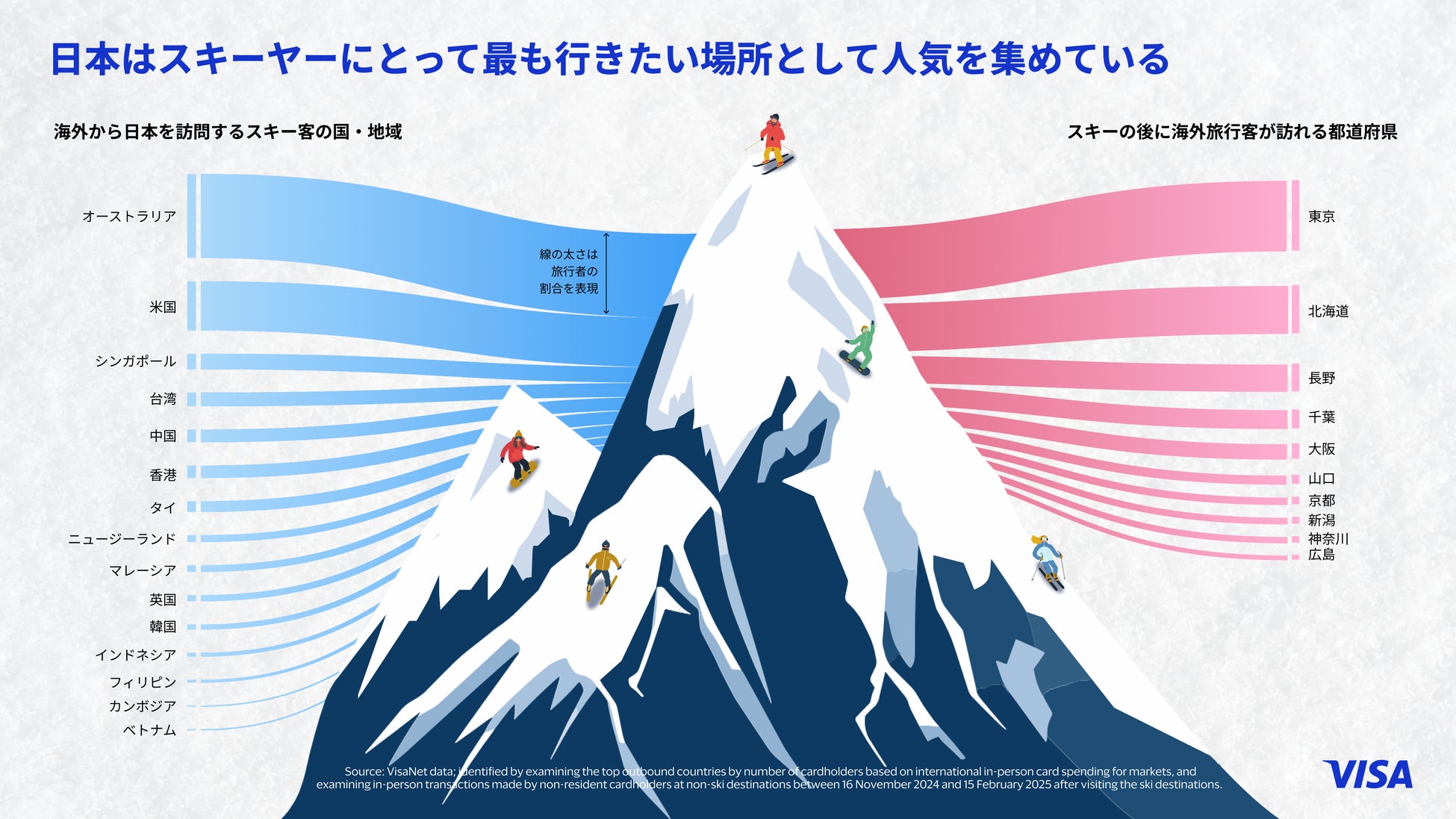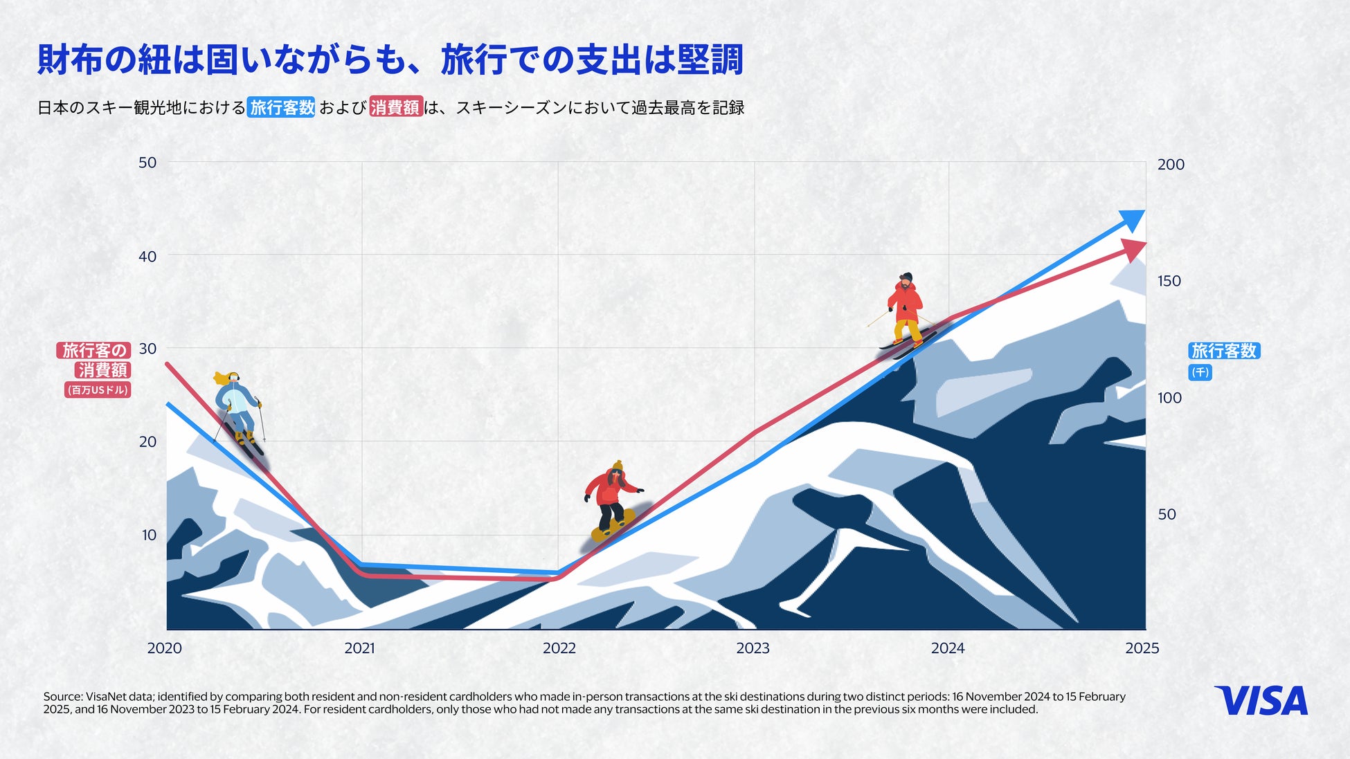 ビザ・ワールドワイド・ジャパン株式会社(本社:東京都千代田区、代表取締役社長:シータン・キトニー)は、本日、VisaNetデータから見える、スキーシーズンにおける旅行者と消費の動向についての分析を発表いたします。