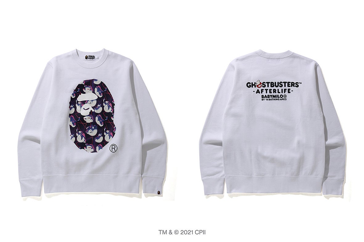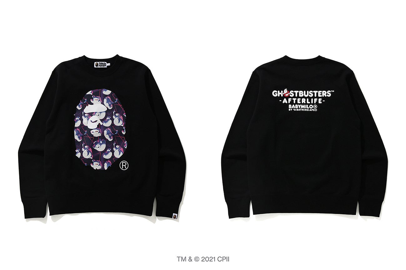 今回のラインアップするのは本作でも登場するキュートなのにイタズラが大好きな「ミニマシュマロマン」とBABY MILO®が共演したグラフィックをデザインに落とし込んだTEE、ZIPフーディ、クルーネックスエット、パンツ、BAPE STA™️各1型づつが発売。