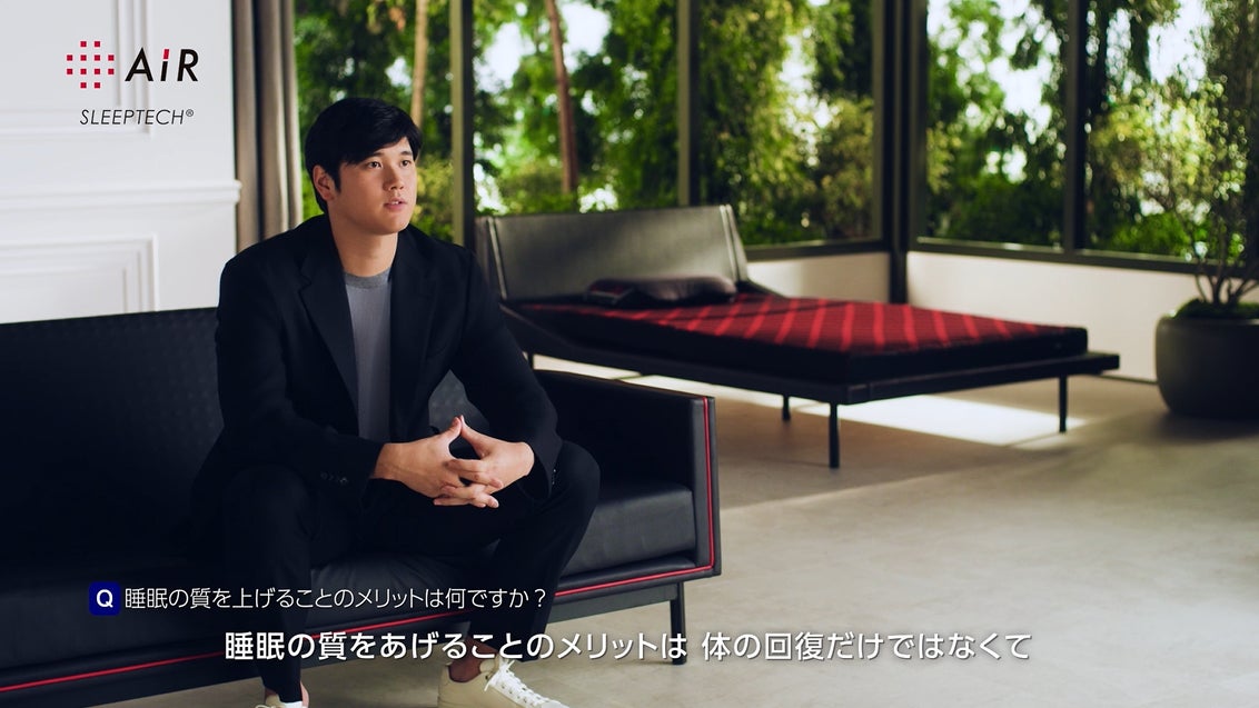 新ビジュアルでは、オンモード、オフモードの大谷選手が[エアーSX]マットレスに腰かけ、「大切にしているのは、毎日の睡眠です。」という直筆メッセージで、睡眠の重要性を伝えています。