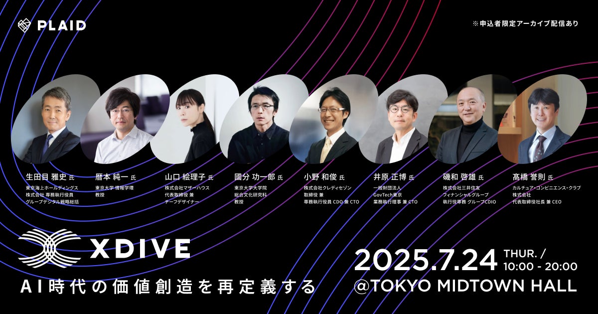 株式会社プレイド(東京都中央区:代表取締役CEO 倉橋健太)は、2025年7月24日(木)、東京ミッドタウンホールにて、変革のリーダーによる共創的対話から新しい価値を探索するカンファレンス「X DIVE(クロスダイブ)」を初開催します。