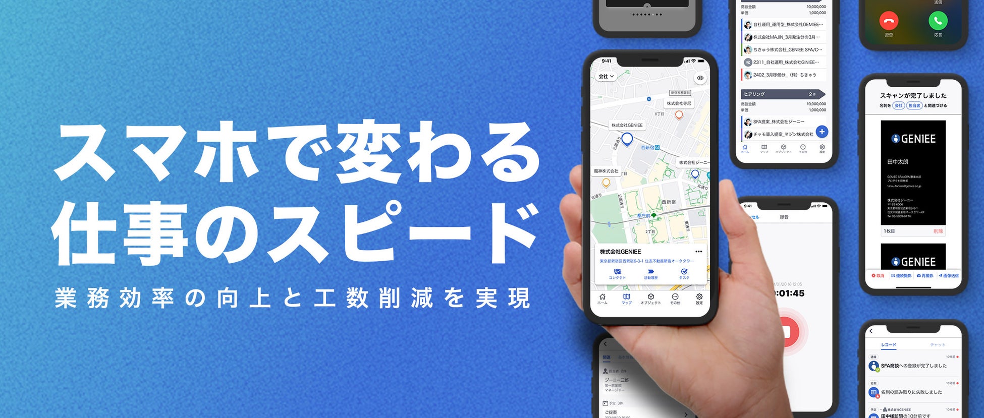 特に昨今は、アフターコロナの働き方として顧客先への訪問営業とオンラインの営業活動のハイブリッドな働き方が求められています。このような流れを受け、ジーニーでは移動中やちょっとした隙間時間の有効活用に着目し、より使いやすく、仕事の流れを止めないスマートフォンアプリを提供すべく、この度のリニューアルに至りました。