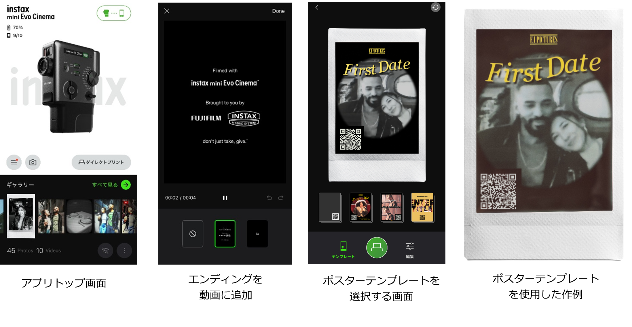専用アプリ(※2)では、撮影した動画を組み合わせて編集したり、映画のようなオープニングやエンディングのテンプレートを追加でき、動画をより特別に仕上げることが可能。さらに、「ダイレクトプリント機能」を搭載し、スマホの画像をチェキプリント™にできます。