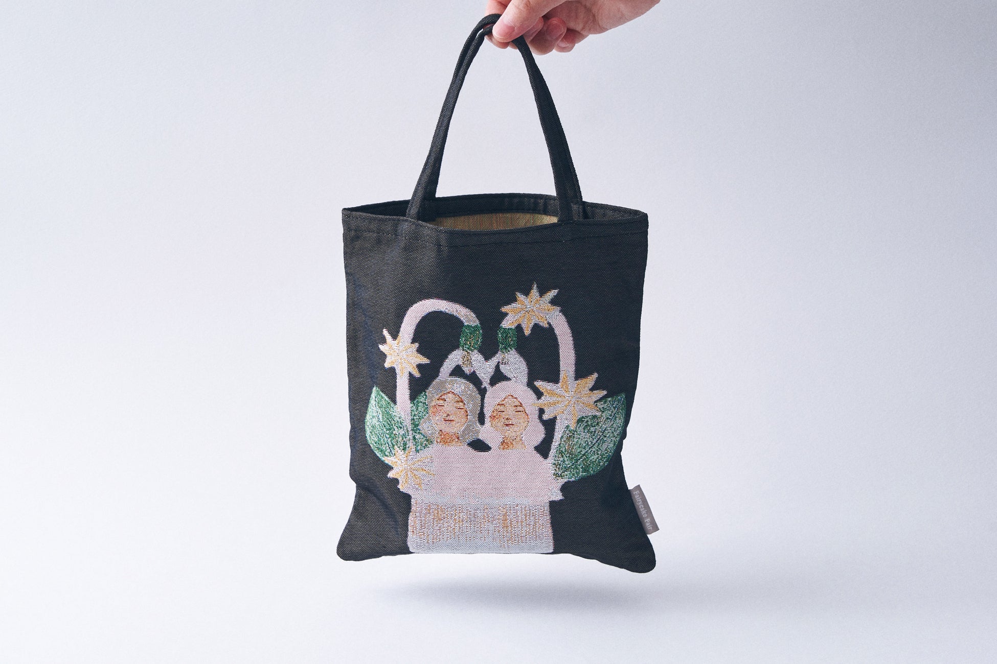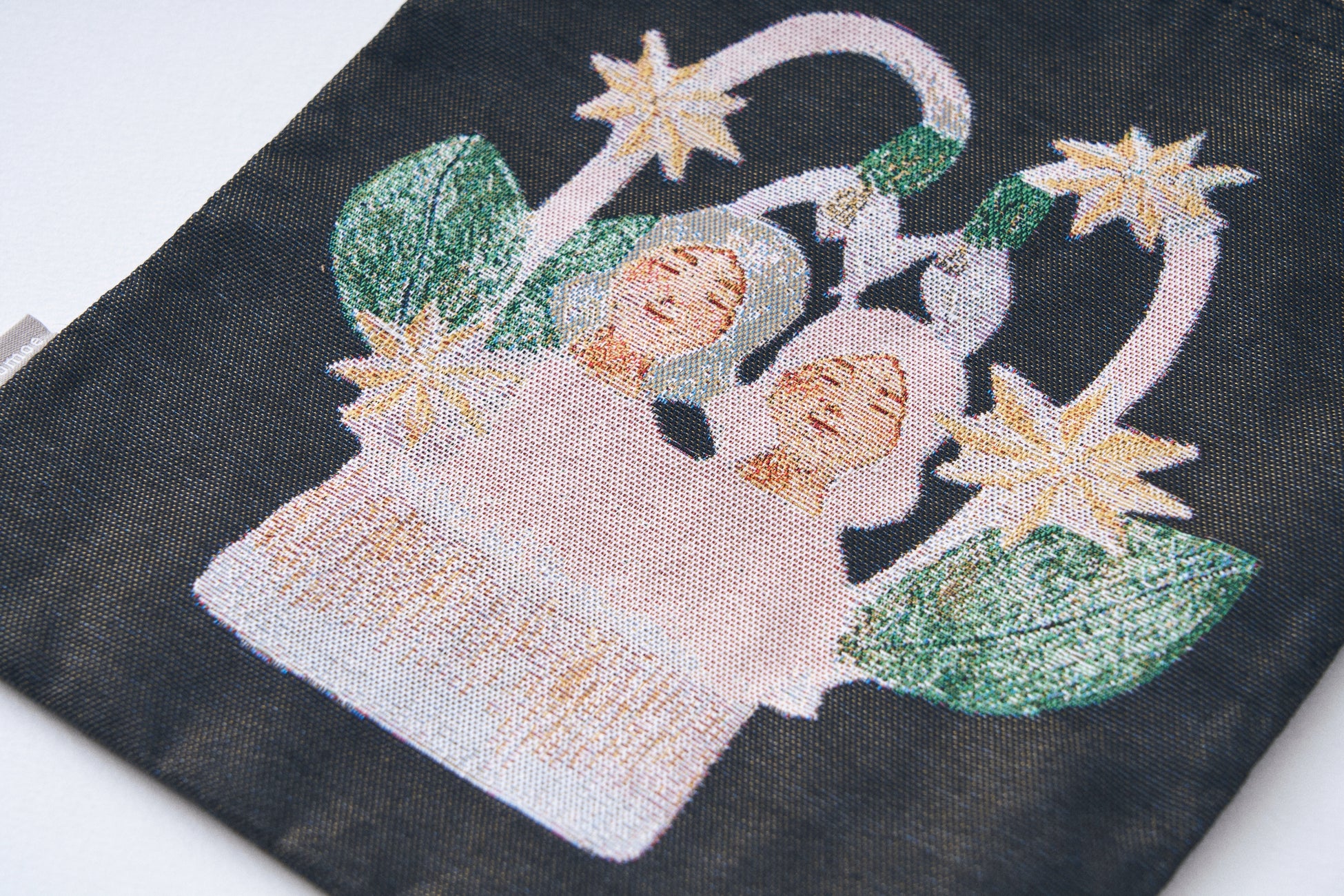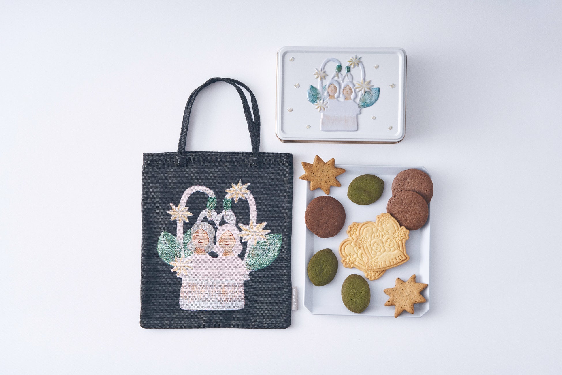 クリスマスビスケット缶と同じスノードロップと双子の天使のデザインを施した美しいゴブラン織りトートバッグは、缶がすっぽりと入るサイズ感。クリスマスギフトとしても、大切な人への贈り物としてもぴったりなセットアイテムをご用意しました。希望を象徴するスノードロップと天使たちの優しいデザインが、贈り物に特別な意味を添えます。