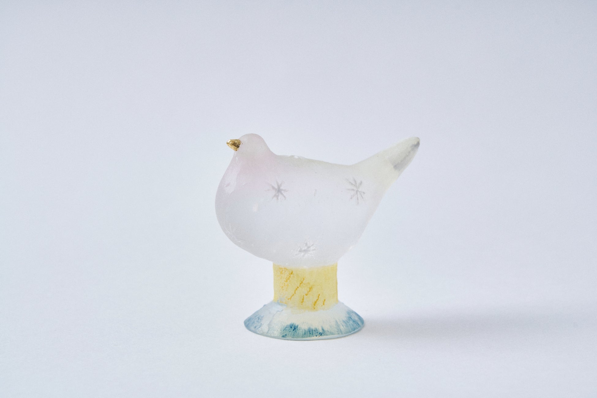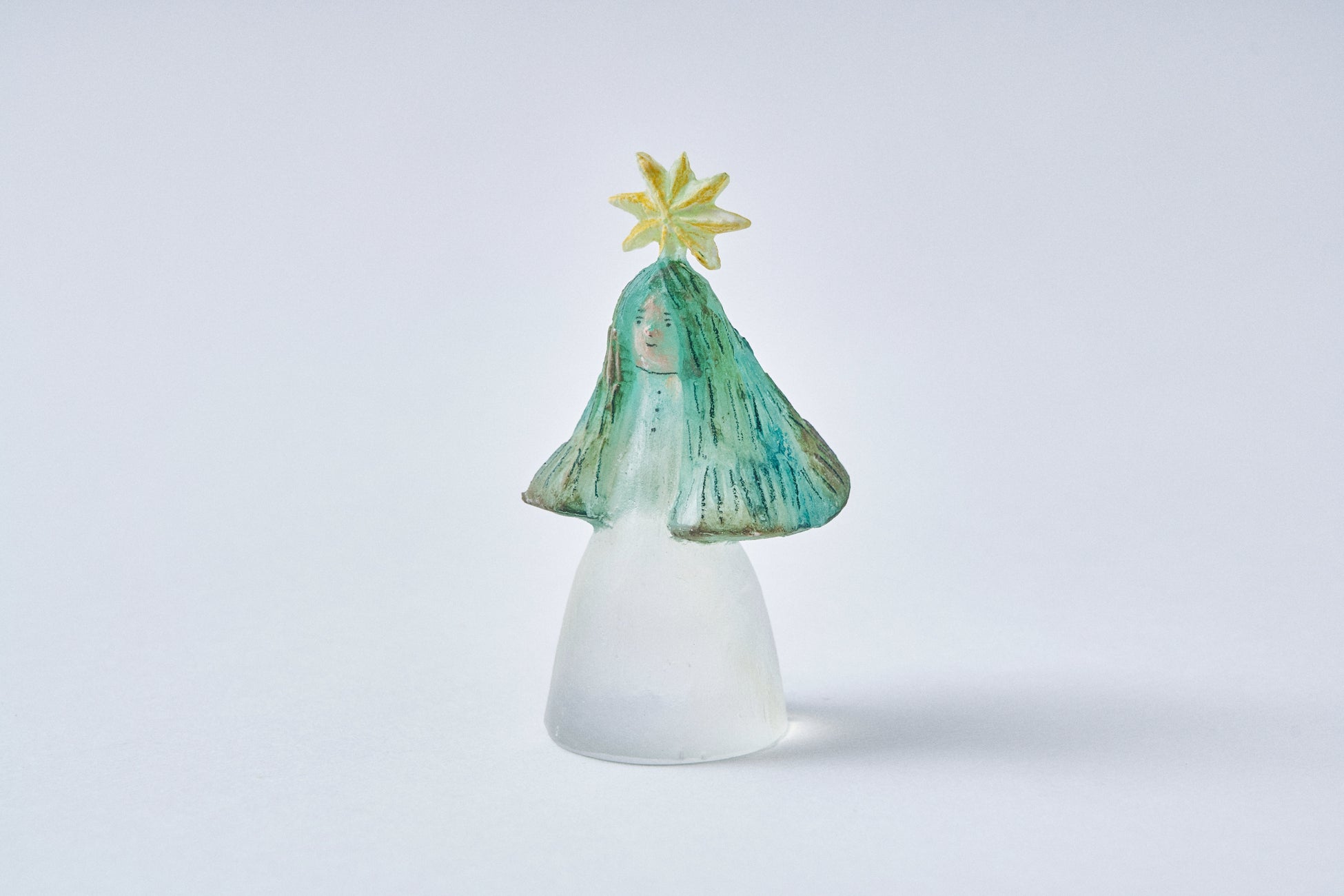 キルンワークという技法を使って作られる安達さんのガラス作品は、くもりガラスのような優しい質感で凛と佇み、淡く柔らかい光が差し込んだ姿が幻想的。一つひとつが手作りのため、同じものは一つとしてありません。クリスマスのワクワクした空気を感じさせてくれるガラスの静かな輝きで、冬の特別なひとときを彩ります。