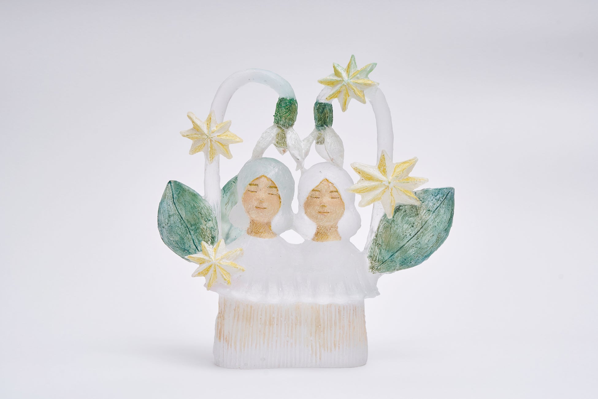 大切なあなたのために、希望の花を咲かせ、よろこびを祈ろう。「スノードロップ」の花言葉は、希望。花のまわりには、きらきらと輝く星たち。希望のもとで寄り添う双子の天使が静かに願いを込めています。静けさのなかに優しい光を宿すその作品のように、食べたひとのこころを温かくするクリスマスお菓子をお届けします。