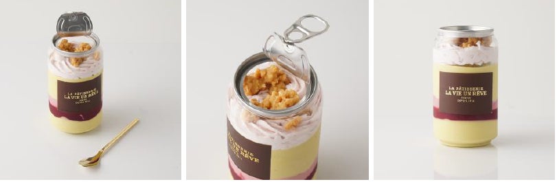 本自動販売機は、2022年3月に有楽町マルイにて期間限定で実施した「Cake.jpポップアップ」でお披露目したものです。ご来場いただいたお客様より好評をいただき完売。今回は商品ラインナップを3から9種類に増やし常設することになりました。「アシェットデセール(皿盛りデザート)」が人気の東京・表参道のワインバー「EMMÉ」と、パリ12区の名店で修行をしたパティシエのスイーツを展開する「パティスリーラヴィアンレーヴ」のパフェを、缶にぎゅっと閉じ込めて販売いたします。シーンやお好みに合わせてお選びください。