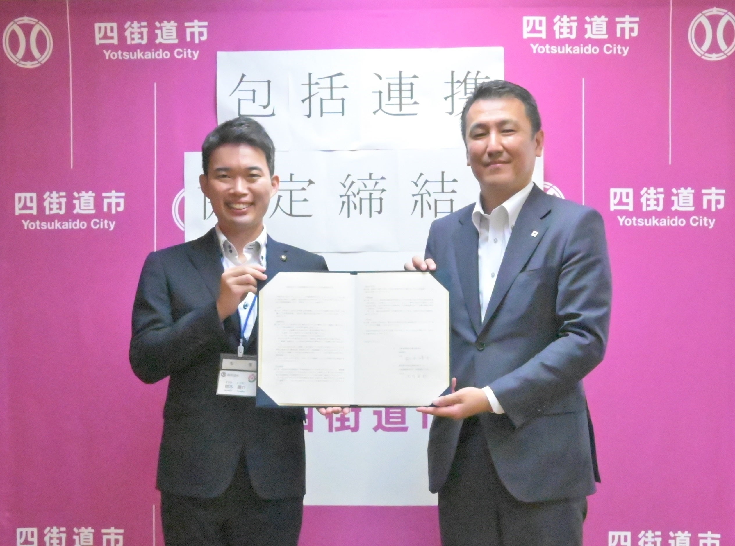 四街道市と大塚製薬株式会社は、緊密な相互連携と、それぞれの資源を有効に活用した協働による活動を推進し、地域の一層の活性化及び市民サービスの向上を図ることを目的として、包括連携協定を締結しました。