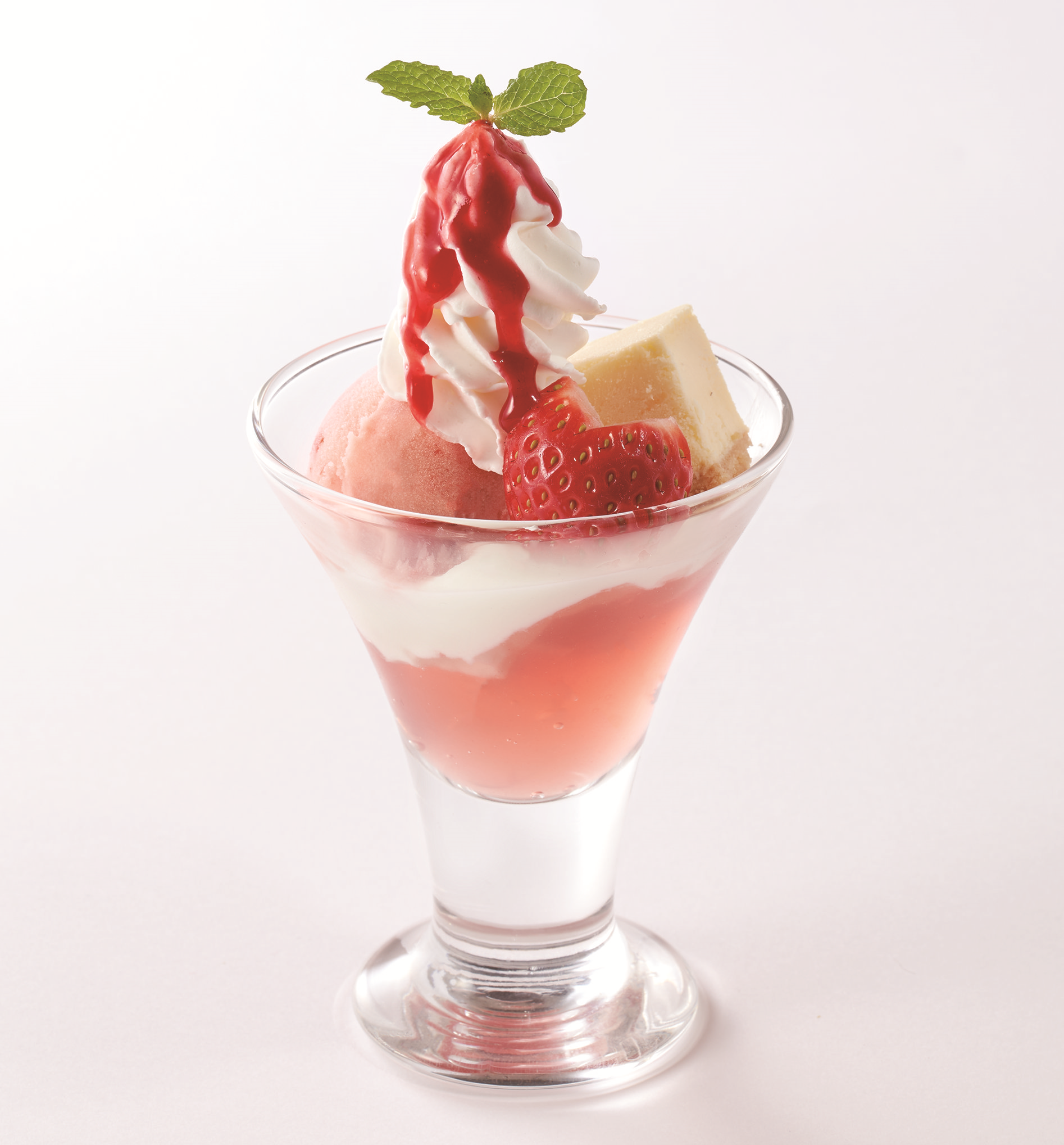 口の中でとろ~りとろける北海道産チーズケーキといちごの味わいと食感を楽しめます。アロエ、ラズベリーソース、マスカルポーネクリーム、いちごゼリー、ソフトクリームが幾重にも重なる層は見た目にも鮮やかなパフェ。期間限定の味のハーモニーをご賞味ください。