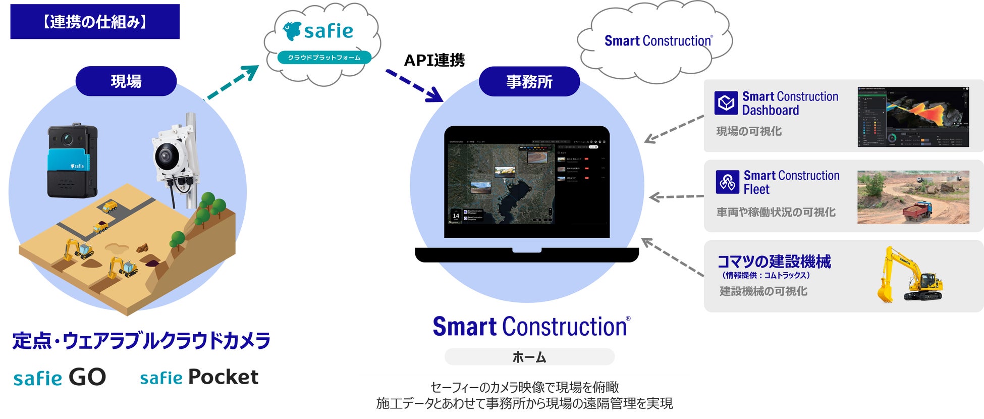 クラウド録画サービスシェアNo.1(※1)のセーフィー株式会社(東京都品川区、代表取締役社長CEO 佐渡島 隆平、以下「セーフィー」)と、建設業向けデジタルソリューション「Smart Construction®」を提供する株式会社EARTHBRAIN(東京都港区、代表取締役社長 小野寺 昭則、以下「EARTHBRAIN」)は、この度、建設現場の遠隔管理と生産性向上を目的としたシステム連携を実施し、建設現場のDXを加速するソリューションの提供を開始しました。本連携により、複数の現場を統括する管理者が遠隔からでも現場の状況をリアルタイムで把握でき、迅速な判断を支援します。