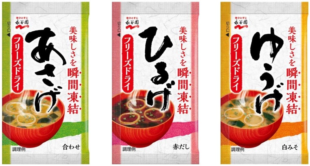 株式会社 永谷園(社長:成田 健一、東京都港区)は、フリーズドライの美味しさを 手軽にお試しいただける1 食タイプの即席みそ汁「フリーズドライあさげ 1 袋」「同 ひるげ 1 袋」「同 ゆうげ 1 袋」(税抜78 円)を、2023 年3 月13 日(月)より全国にて発売いたします。