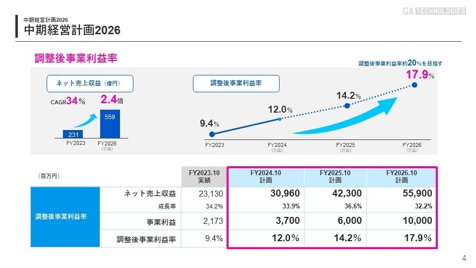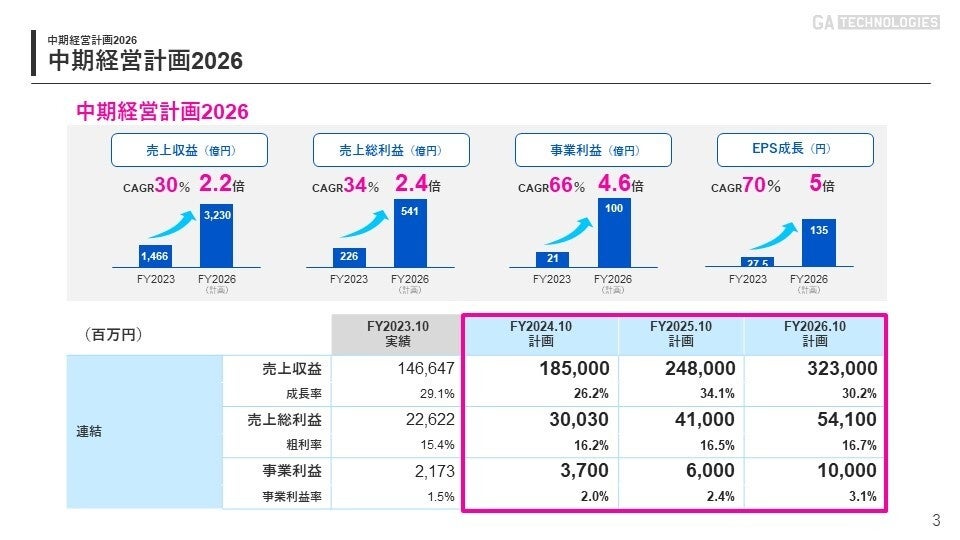 当社は、2024年10月期から2026年10月期までの3カ年の中期経営計画「中期経営計画 2026」を策定し、本日開催の取締役会において計画を決議いたしましたので、下記の通りお知らせいたします。
