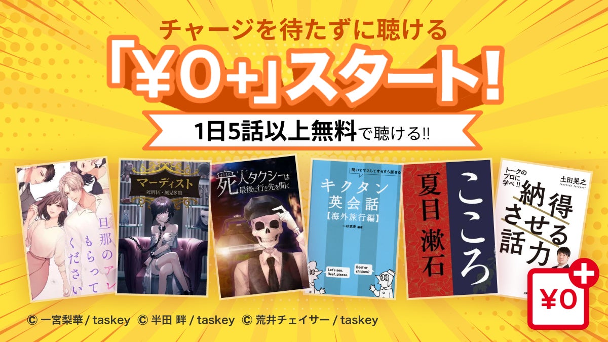 「¥0+」は、配布される「¥0+」チケットを利用することで、対象のコンテンツを1日5話以上無料で聴ける新機能です。