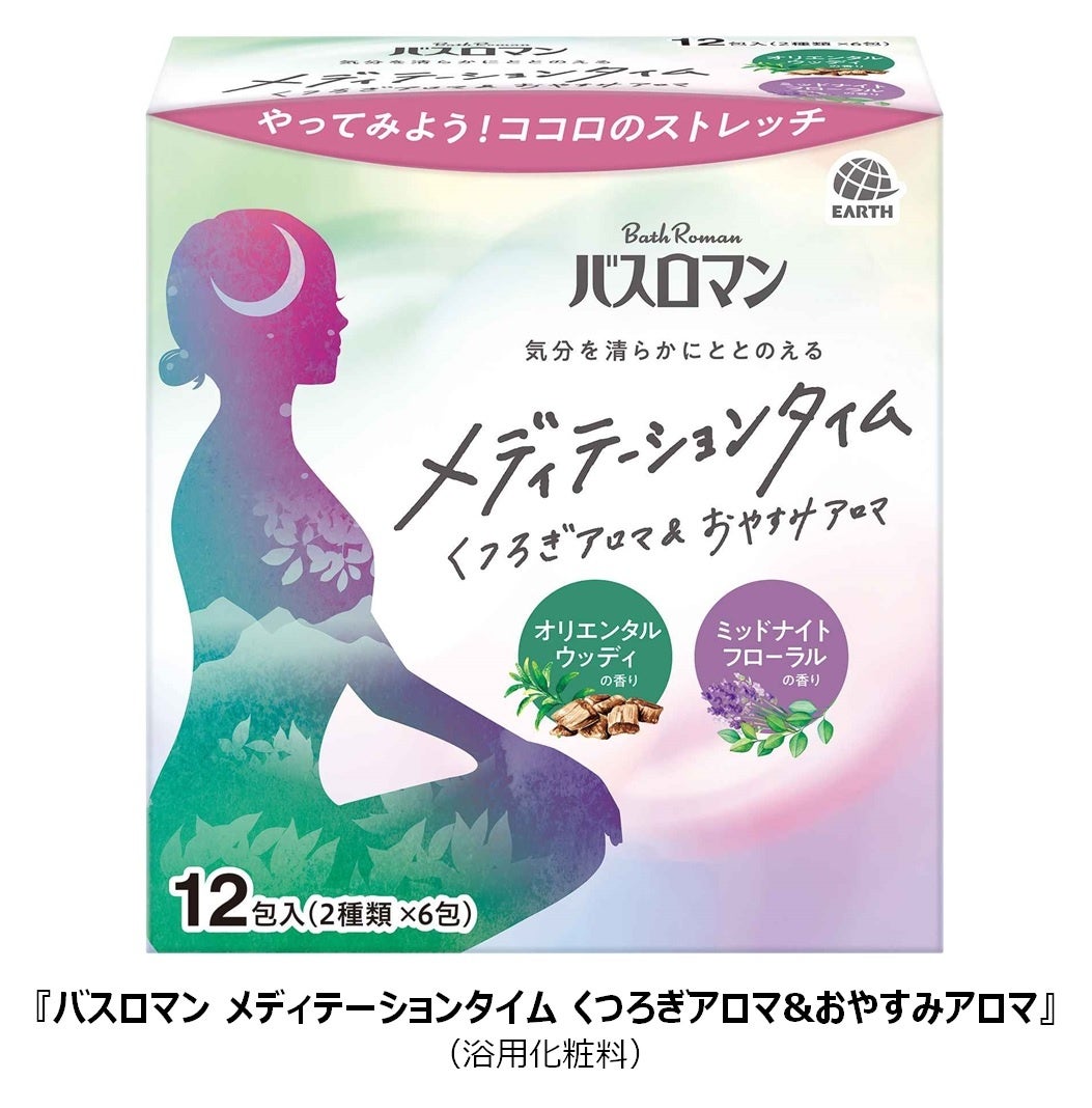 アース製薬から、お風呂で気分をととのえ、瞑想体験をサポートする『バスロマン メディテーションタイム くつろぎアロマ&おやすみアロマ』を新発売