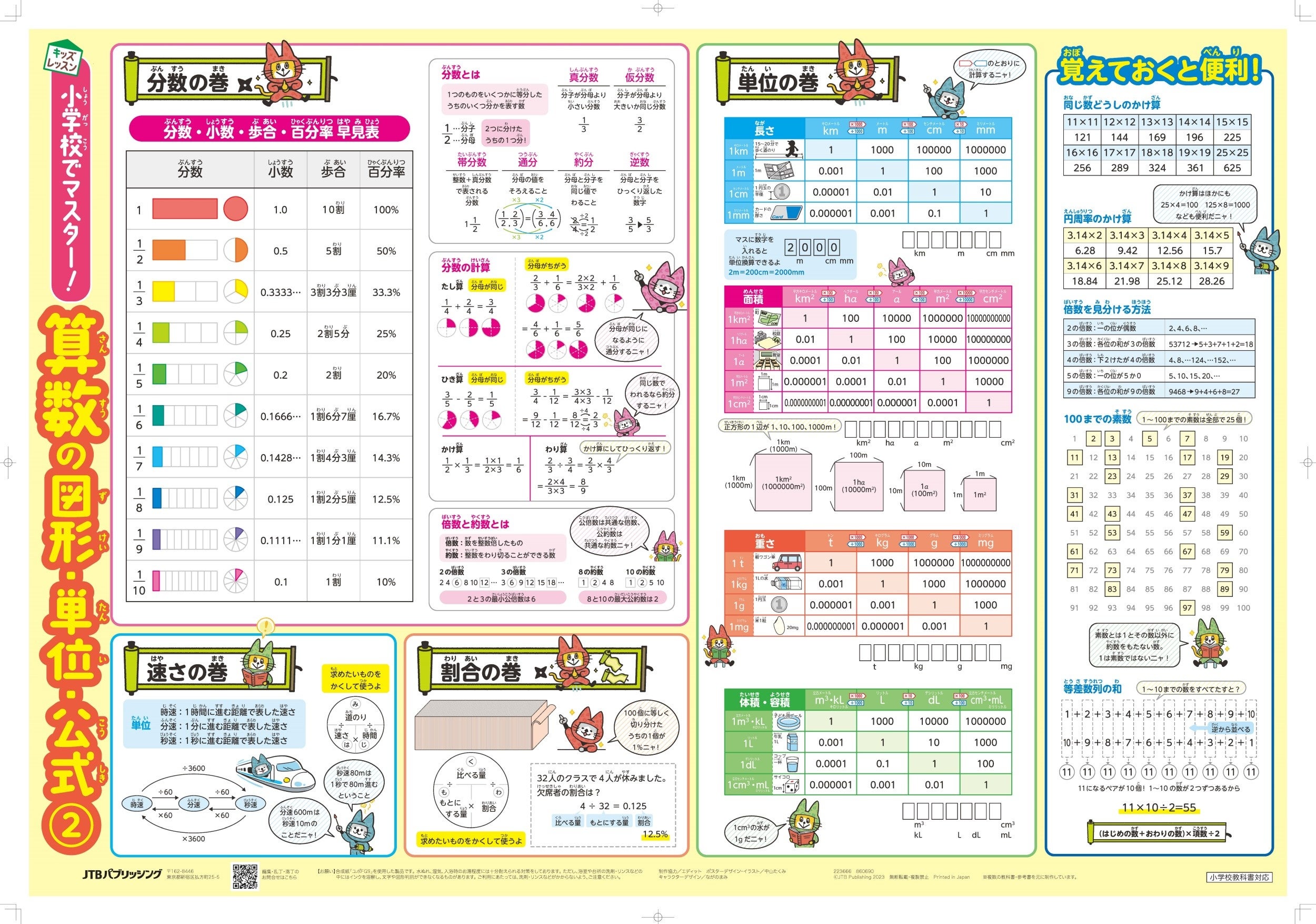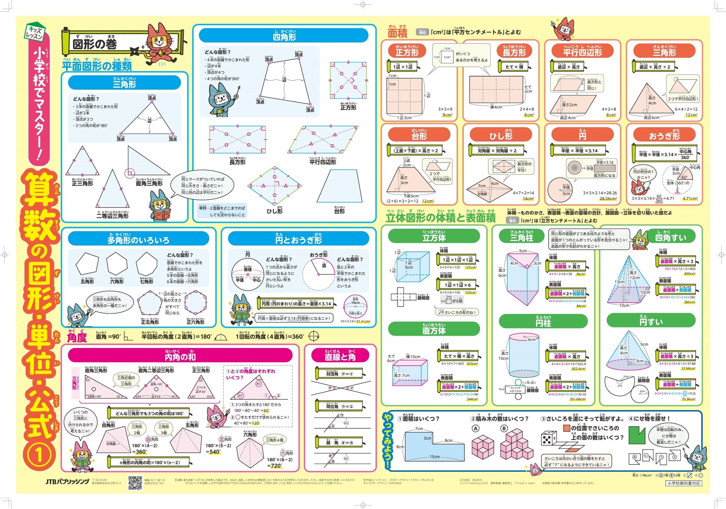 学習指導要領に対応。小学生全学年の算数で、覚えておきたい知識が詰まった学習ポスターです。