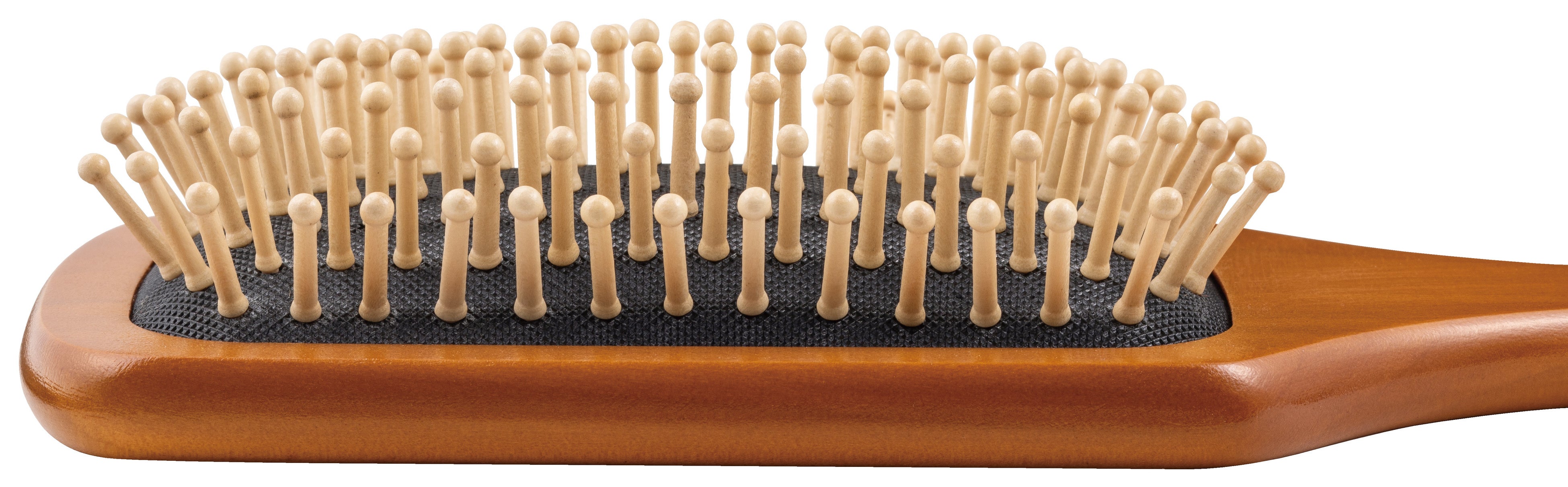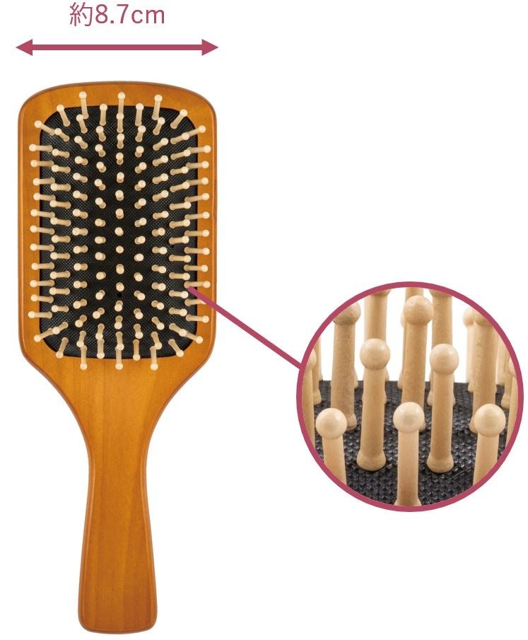 姫椿を使用した木製ピンは、樹脂製よりも静電気の発生を抑え、髪へのダメージを和らげます。また、大きな先丸毛先は肌当たりがやさしく、地肌を心地よく刺激します。