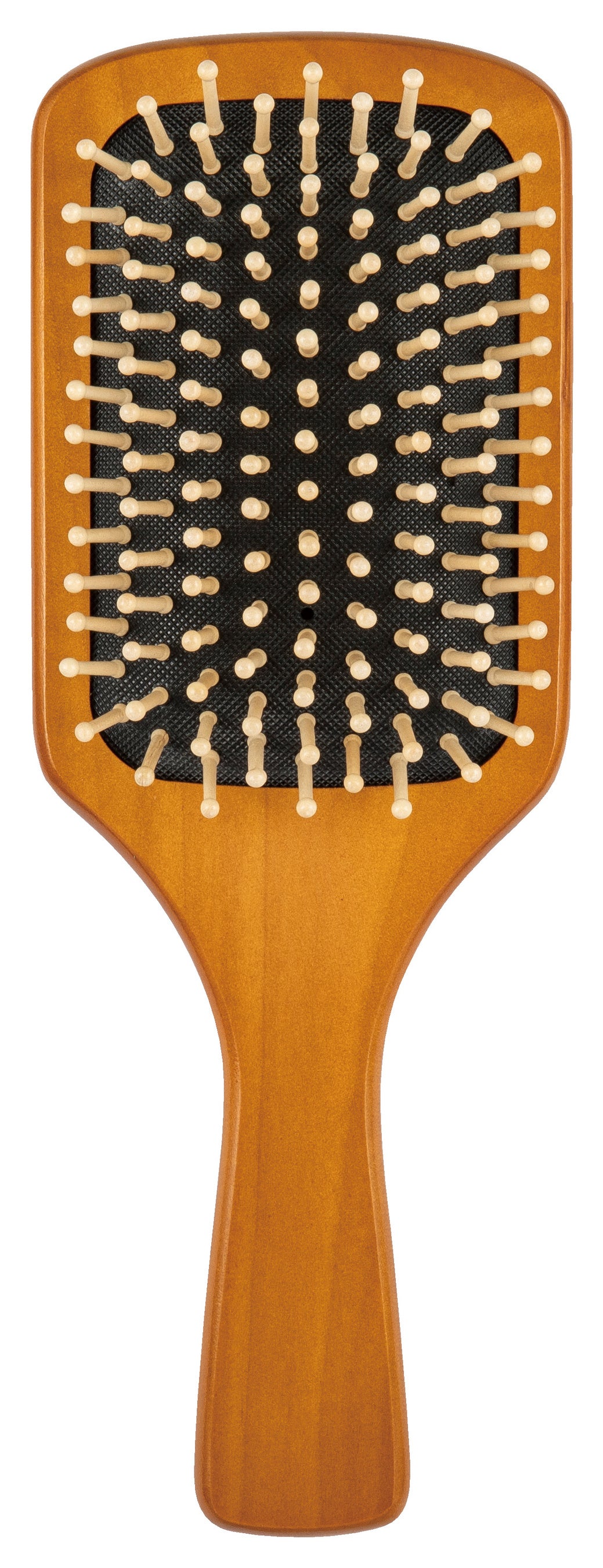 「姫椿のパドルブラシ」は、天然素材の姫椿を採用することで静電気の発生を抑え、髪への負担を減らしたヘアブラシ。大きい先丸毛先は地肌をやさしく刺激します。さらに、ワイドなブラシ面で程よいクッション性があるため、ブラッシングだけでなく、頭皮に押し当ててほぐしたり、ポンポンと軽くたたいたりするマッサージにもお使いいただけます。髪も地肌も癒されるヘアブラシで、快適なヘアケアをサポートいたします。