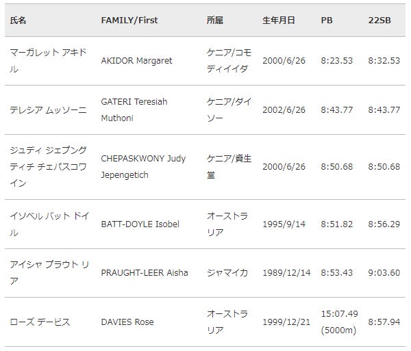 ▼~ダイヤモンドリーグファイナル入賞の三浦・オレゴン2022世界選手権3種目出場の田中らが出場!~出場選手発表 第2弾(男子3000m・3000m障害物、女子1500m・3000m)