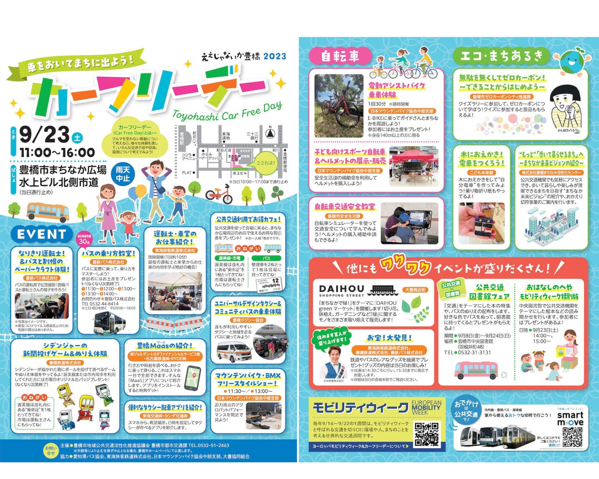 愛知県豊橋市で、9/23(土)に「ええじゃないか豊橋カーフリーデー」が開催されます。