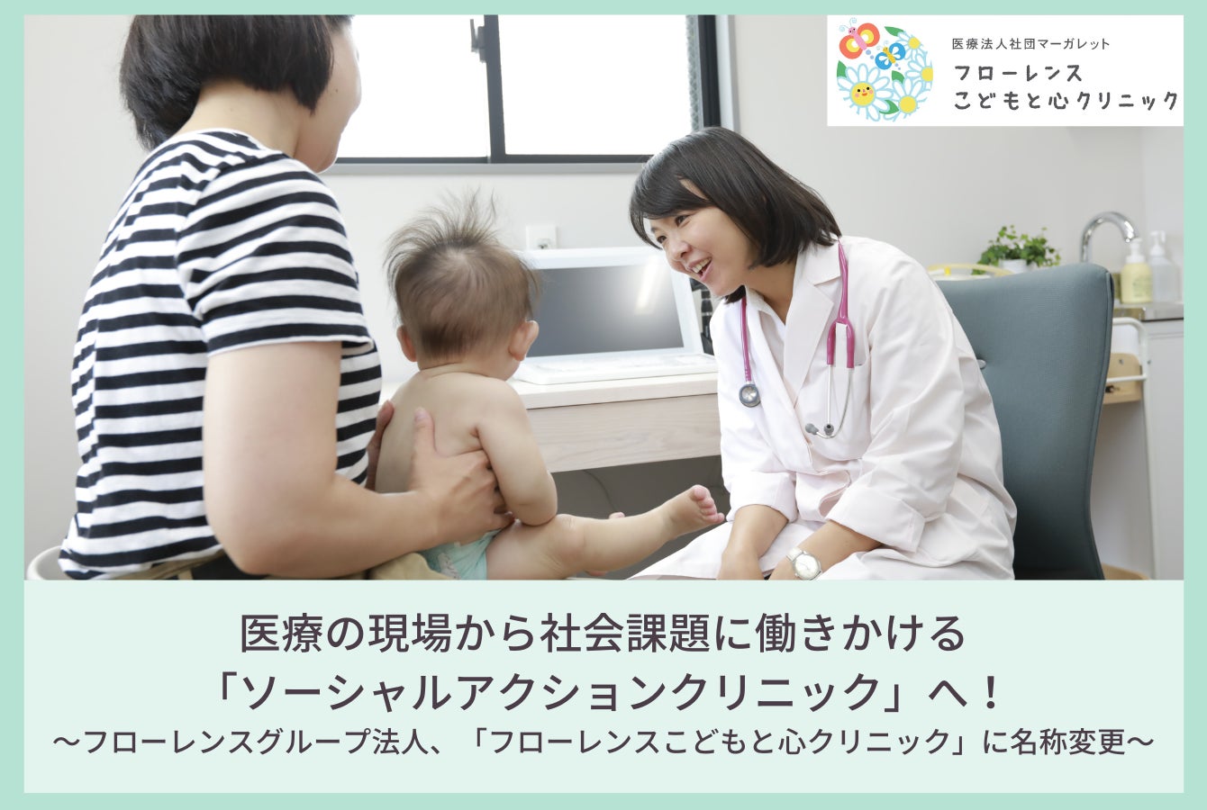 認定NPO法人フローレンス(東京都千代田区、代表理事:赤坂緑)のグループ法人であるマーガレットこどもクリニックが、12月より「フローレンスこどもと心クリニック」と名称を変更しました。また、それに伴い、クリニックの運営法人も医療法人社団ペルルから「医療法人社団マーガレット」に名称を変更します。