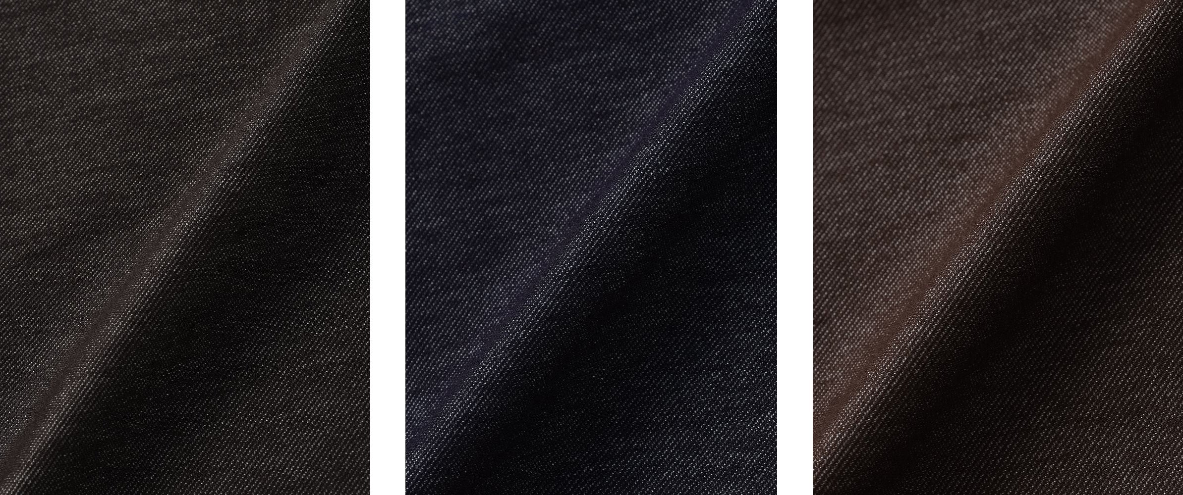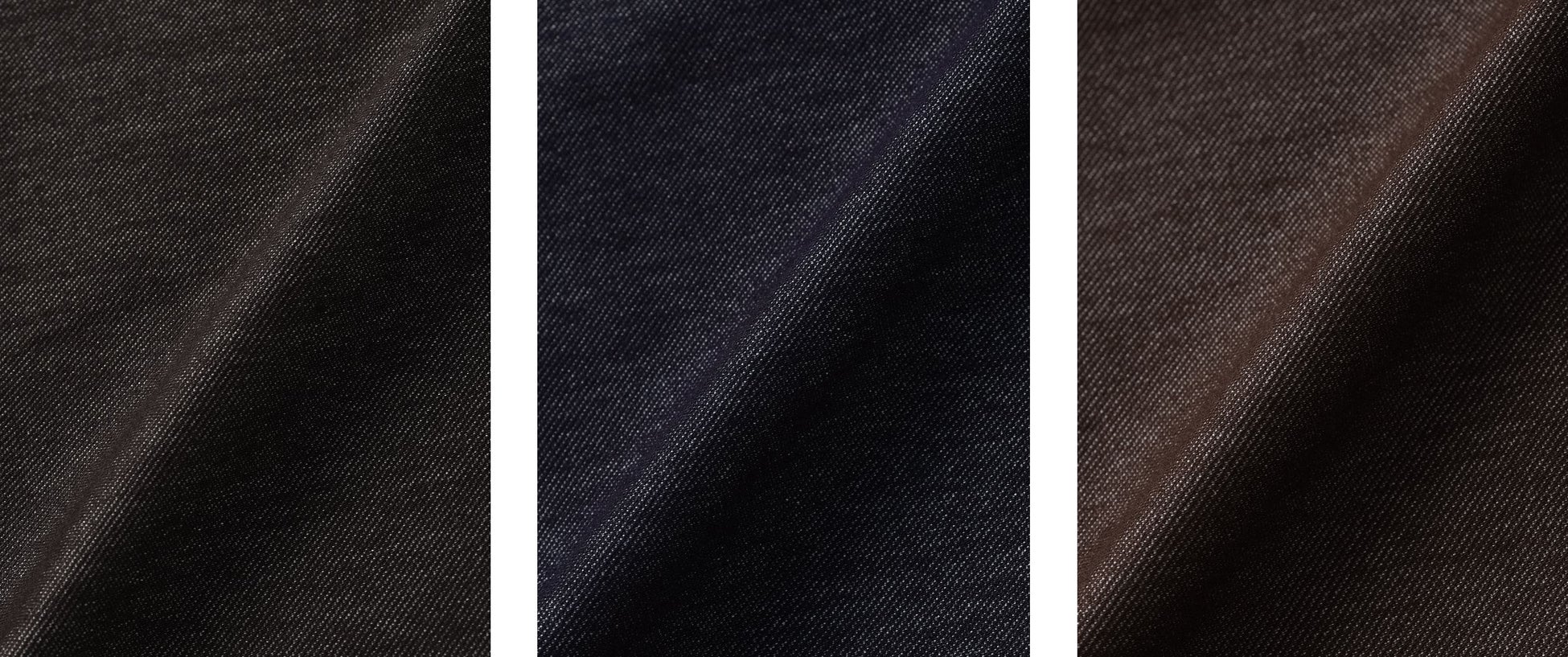 2019年2月から展開している『デニム風ニットセットアップ』のリニューアルデザインです。高ストレッチ性の着心地はそのままに、秋冬シーズンの着用を想定した暖かみ、深みのあるネービー、ブラウン、チャコールグレーの3色を展開いたします。
