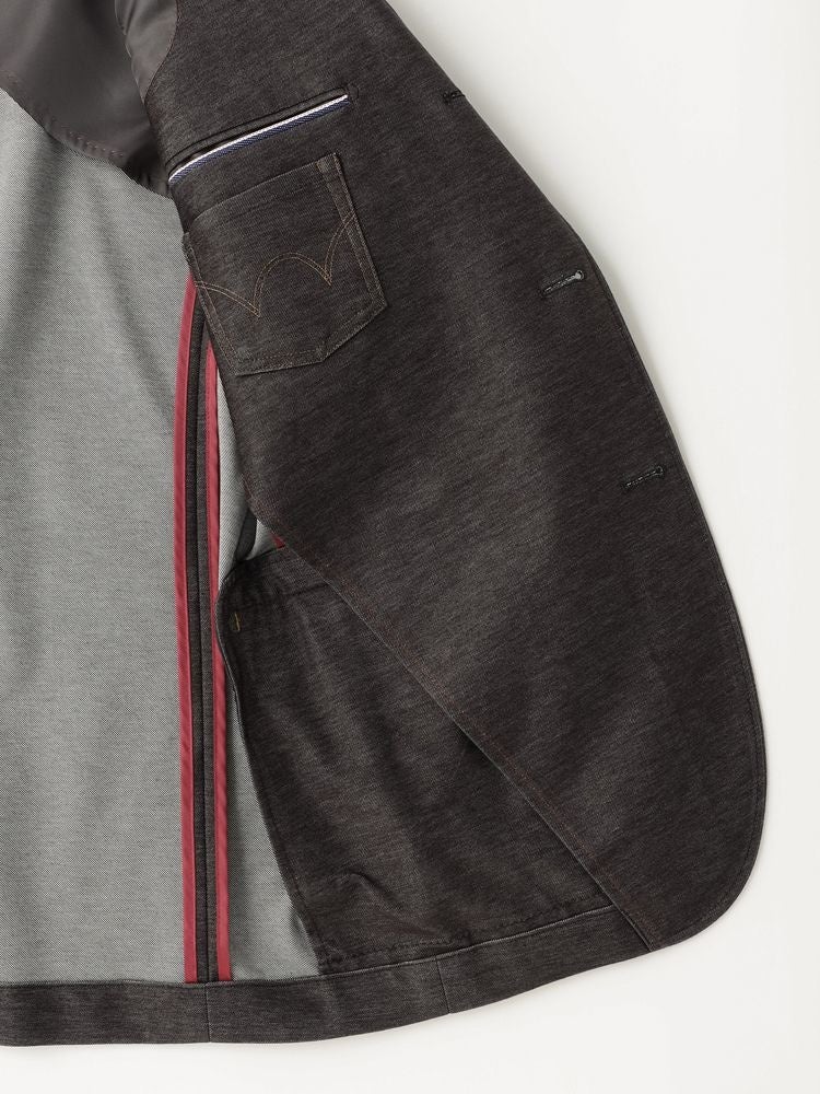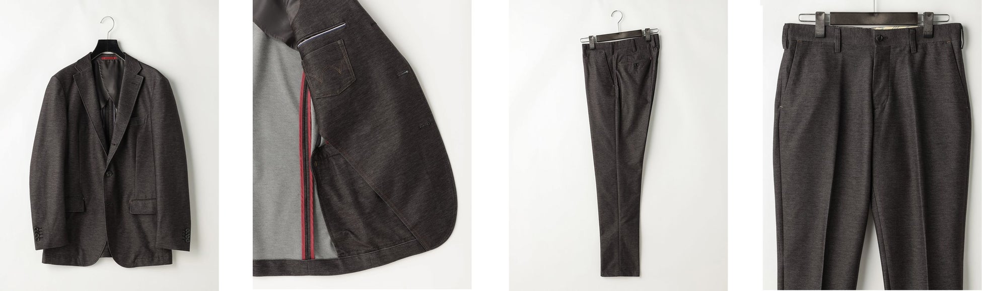 『デニム風ニットセットアップ』は、“デニムに見える”ニット素材“を採用。風合いや裏地の赤色パイピング、金茶色のステッチでデニムのカジュアル感を活かしつつも、すっきりとしたシルエットをキープすることで、ビジネスなどのシーンに馴染む“セットアップ”スタイルを意識しました。ストレスフリーでリラックスした着心地を実現し、通勤時だけでなく在宅ワークなどでも活躍します。