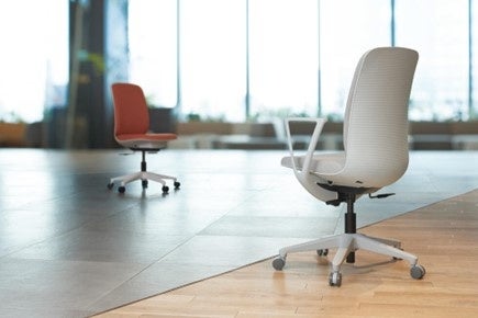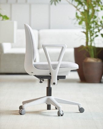 タイルカーペットやシステム天井などのオフィスの内装に馴染みやすいブラックとホワイトの本体色をラインナップ。10色の抗ウイルス加工が施されたファブリック、または6色のレザーからお選びいただけます。