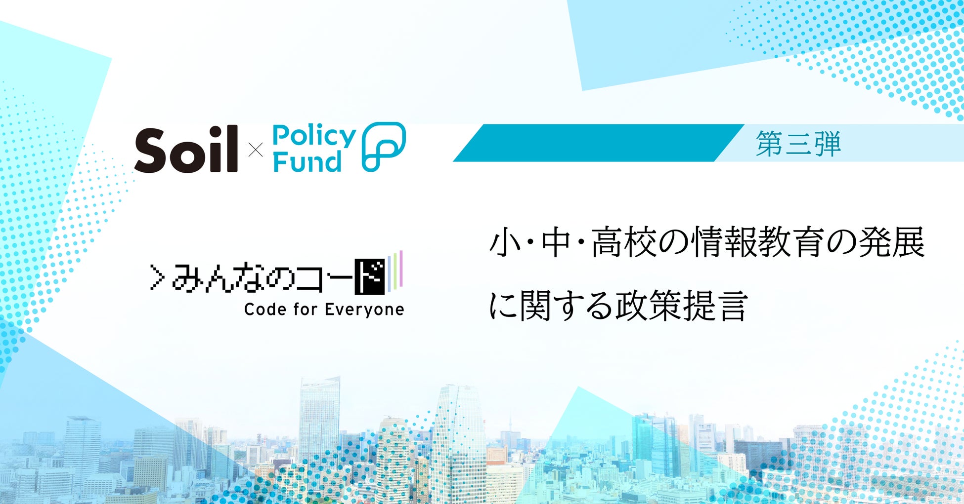 株式会社PoliPoli(東京都千代田区、代表取締役:伊藤和真)は、公益財団法人Soil(東京都渋谷区、代表理事:久田哲史)との共同企画「SoilxPolicy Fund」において、NPO法人みんなのコード(神奈川県横浜市、代表理事:杉之原明子)を2年連続で採択したことをお知らせします。