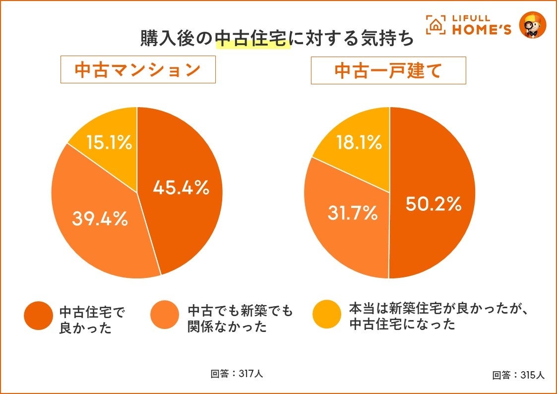 「本当は新築が良かった」人は少数派。「中古住宅で良かった」人が約半数を占める