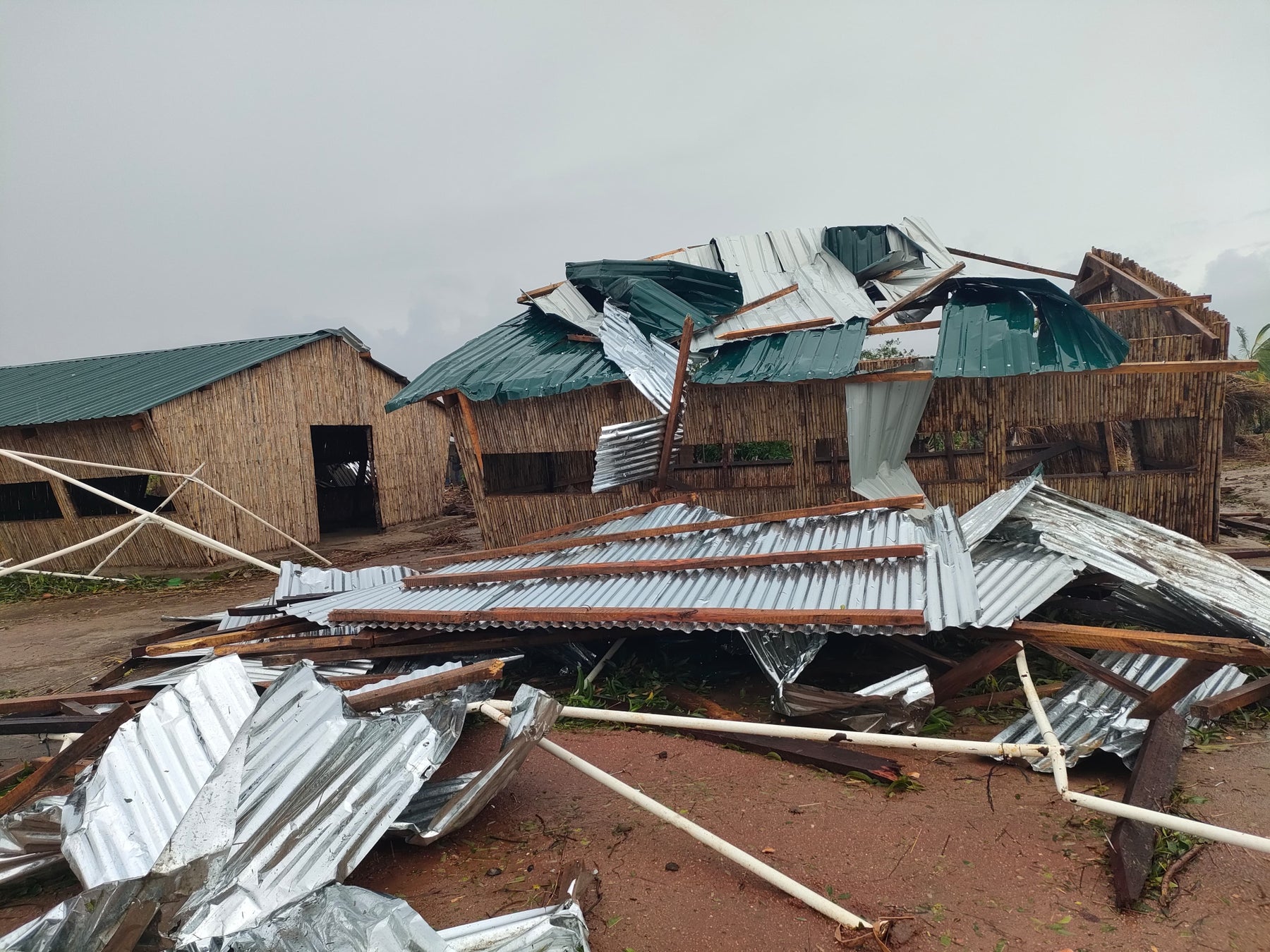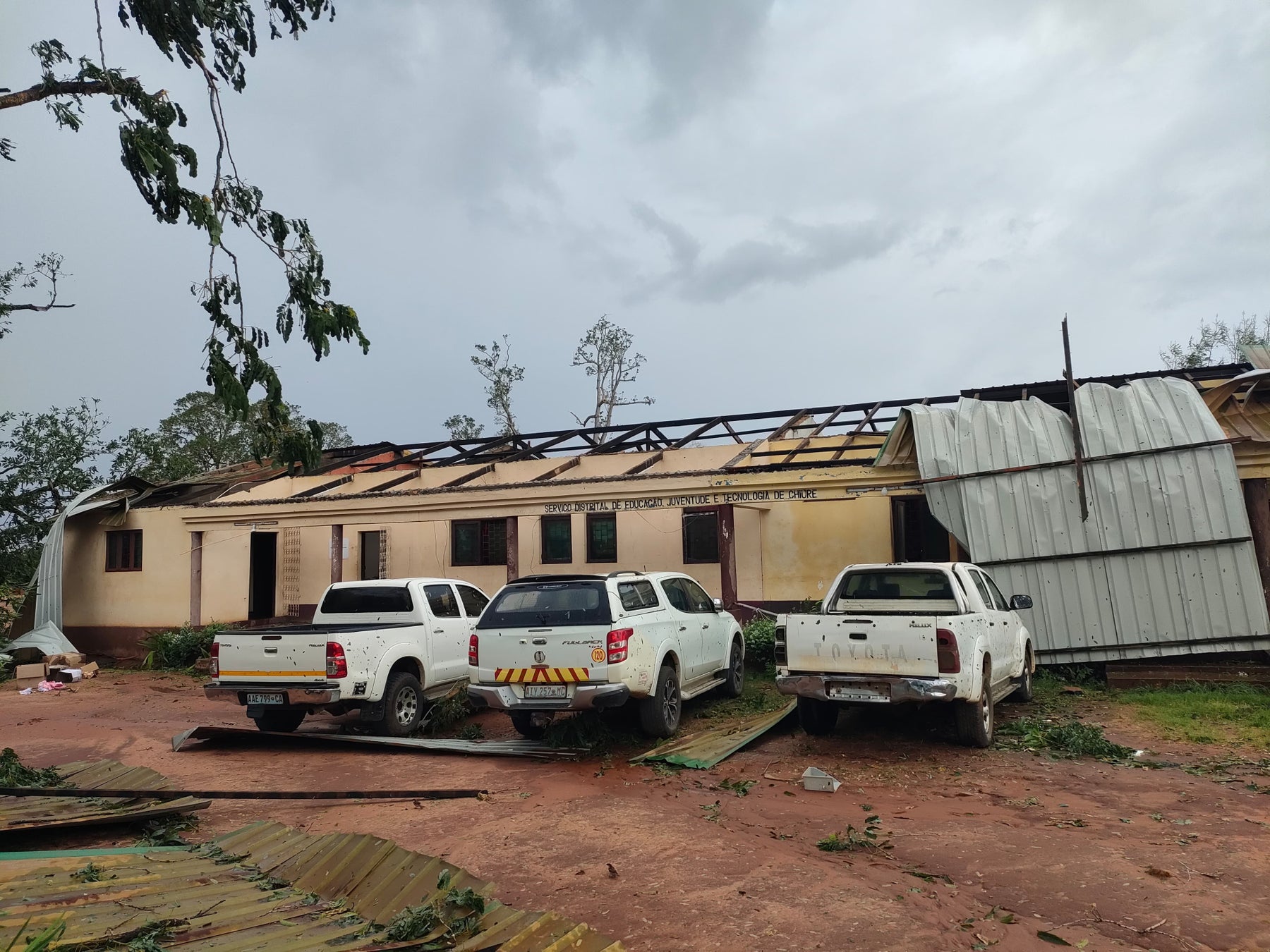 また、モザンビークでは ピースウィンズがフィールド事務所を構え、これまでも支援活動を行っています。12月15日、強風によって事務所の塀の倒壊や、事務所内の木の倒木・窓が割れる被害を受けました。また、事務所の近隣の建物の屋根が事務所に飛んできた状況なども確認しています。